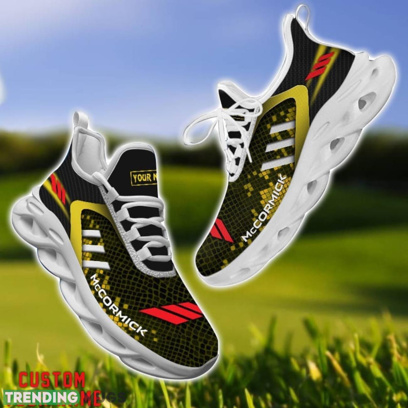 Elevate your fan game with the McCormick Yellow Striped Max Soul Shoes Personalized Name For Fans! These trendy kicks are not only stylish but also customizable with your own name, making them a truly unique addition to your wardrobe. The bold yellow stripes and sleek design will have you standing out in the crowd at any game or event. Get ready to show off your team spirit in style with these one-of-a-kind personalized shoes.