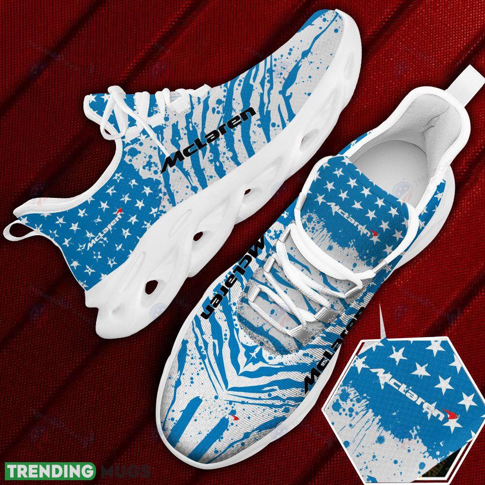 This McLaren Car And Motorcycle Racing Chunky Shoes Blue Max Soul Sneakers For Men Women is a breathable, lightweight, and comfortable casual outdoor shoe that has a unique design. It is made of a mesh fabric which makes it sweat absorbent and breathable, while the rubber bottom ensures traction, comfort, and durability. It is available in two colors: black or white sole. There are two styles of shoelace holes so you can choose your preference.