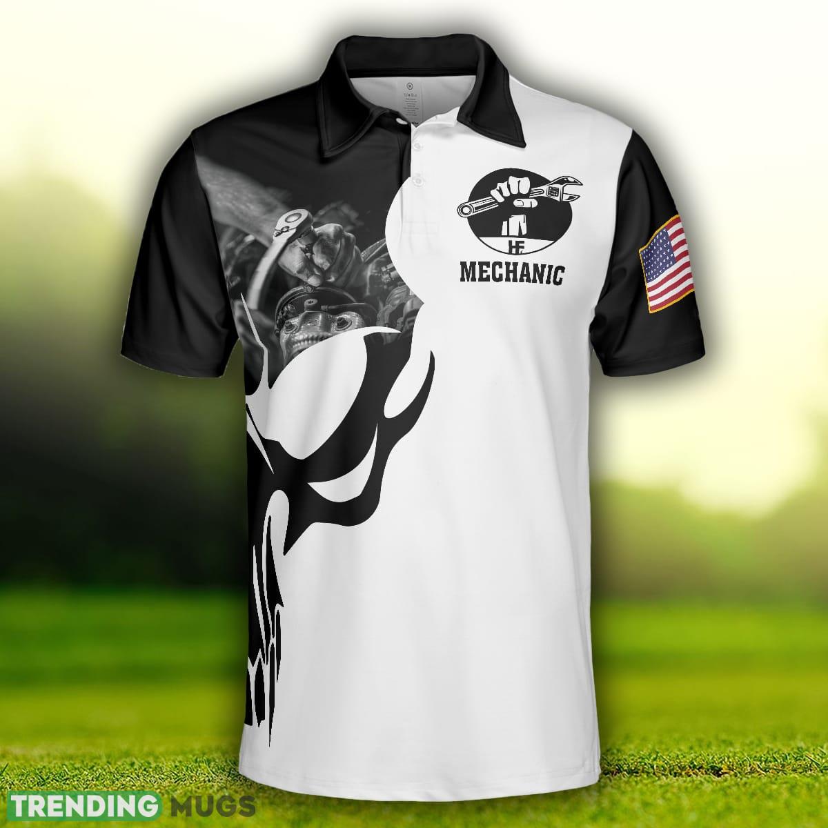 Donning this shirt, you’ll not only look stylish but also feel a sense of pride in your profession. Whether you’re working under the hood or enjoying some downtime, this Mechanic Proud Skull Black and White Polo Shirt is a must-have addition to your wardrobe. So why wait? Grab yours today and let your outfit reflect your passion and expertise in the world of mechanics!
