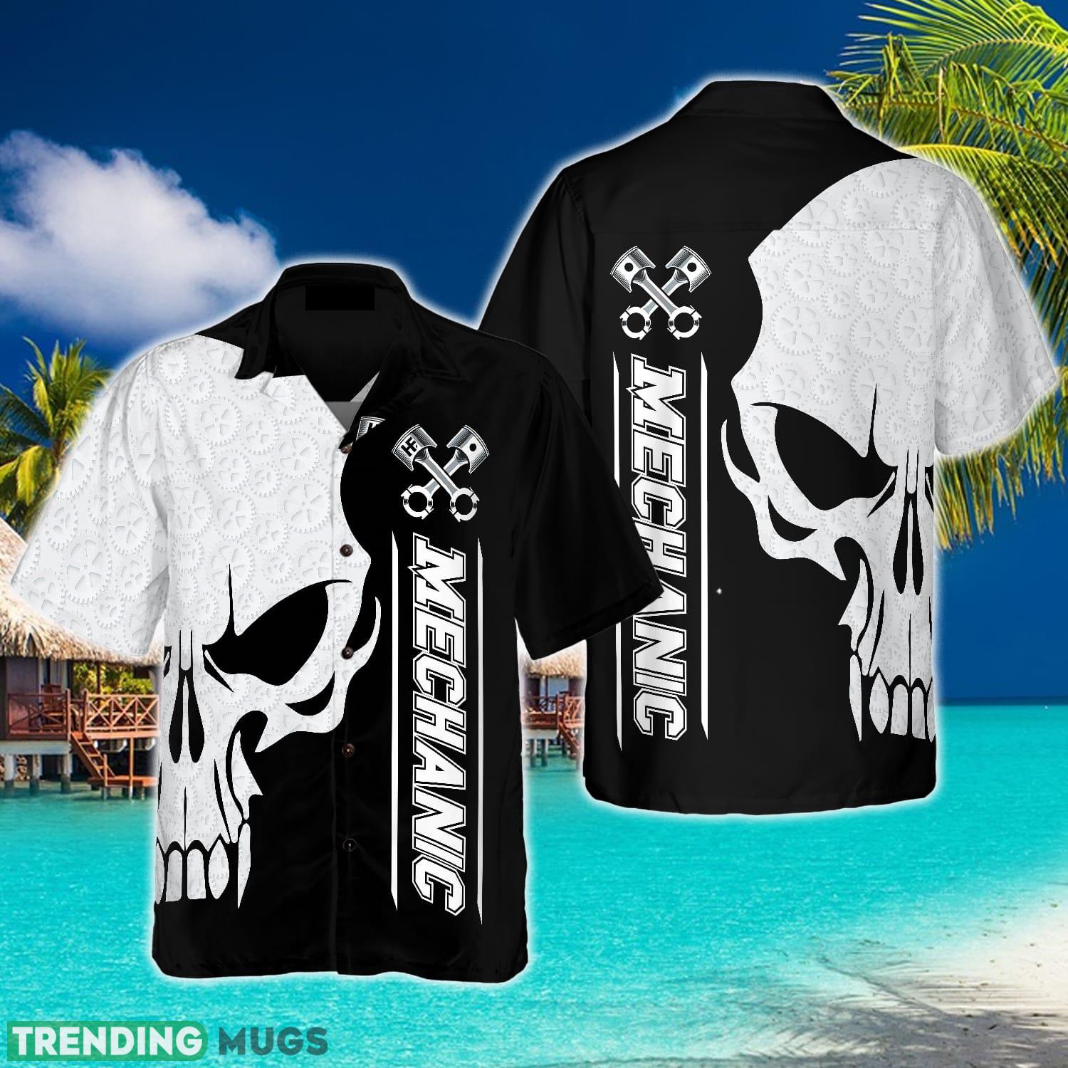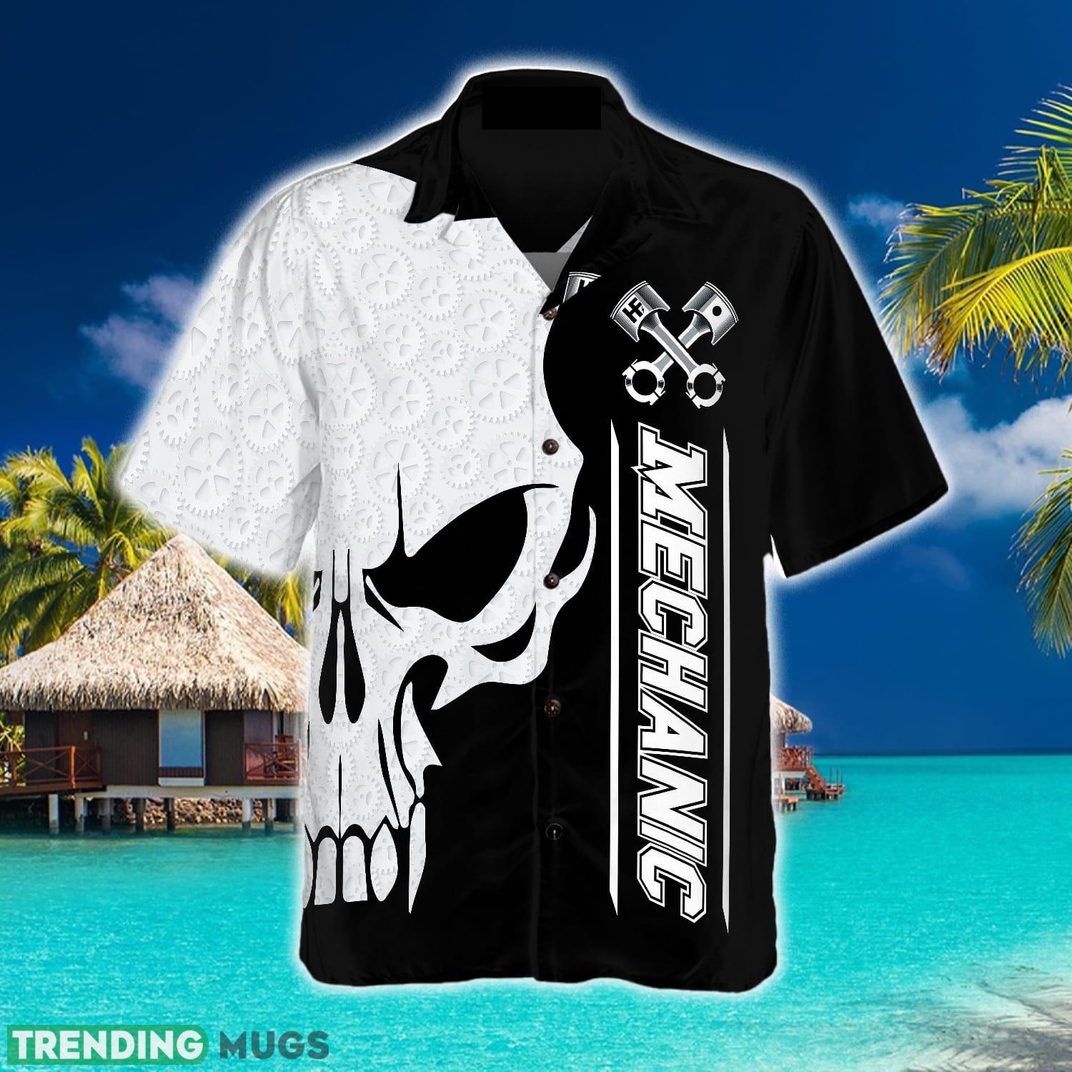 Mechanic Proud Skull Black White Hawaiian Shirt Aloha Summer For Men And Women Gift Details: