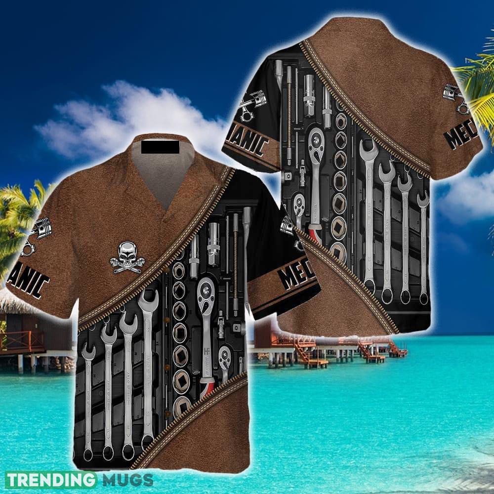Don’t miss out on this must-have summer essential! Grab your Mechanic Tools Skull Mechanic Hawaiian Shirt today and let your outfit do the talking.