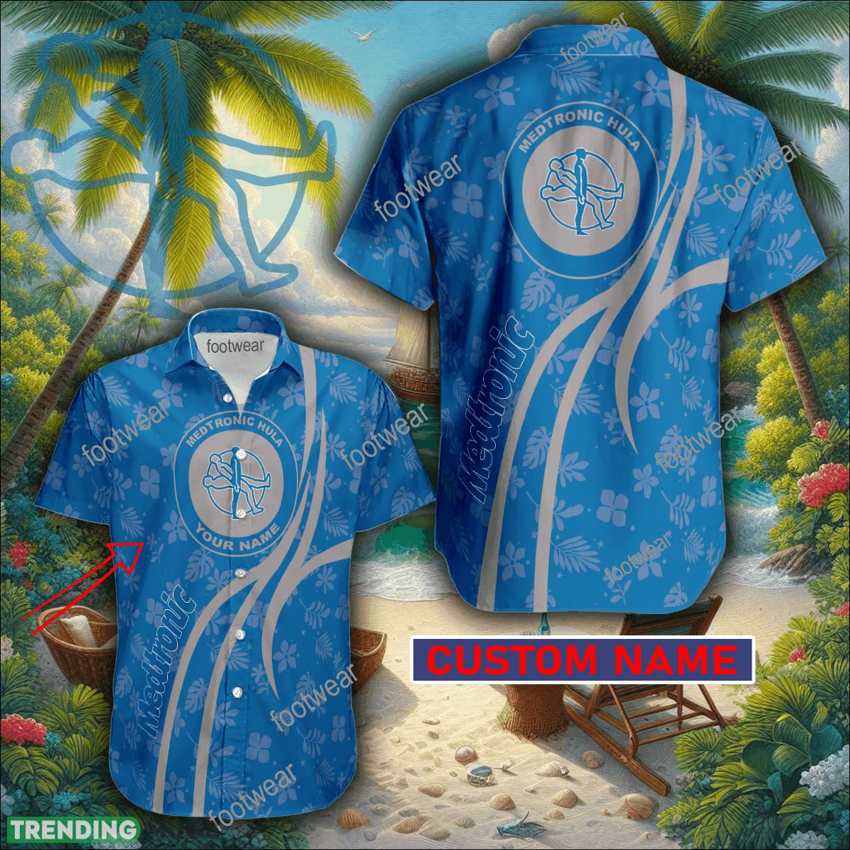 Medtronic Hula 3D Hawaiian Shirt Logo Brand Custom Name Gift Beach Details: