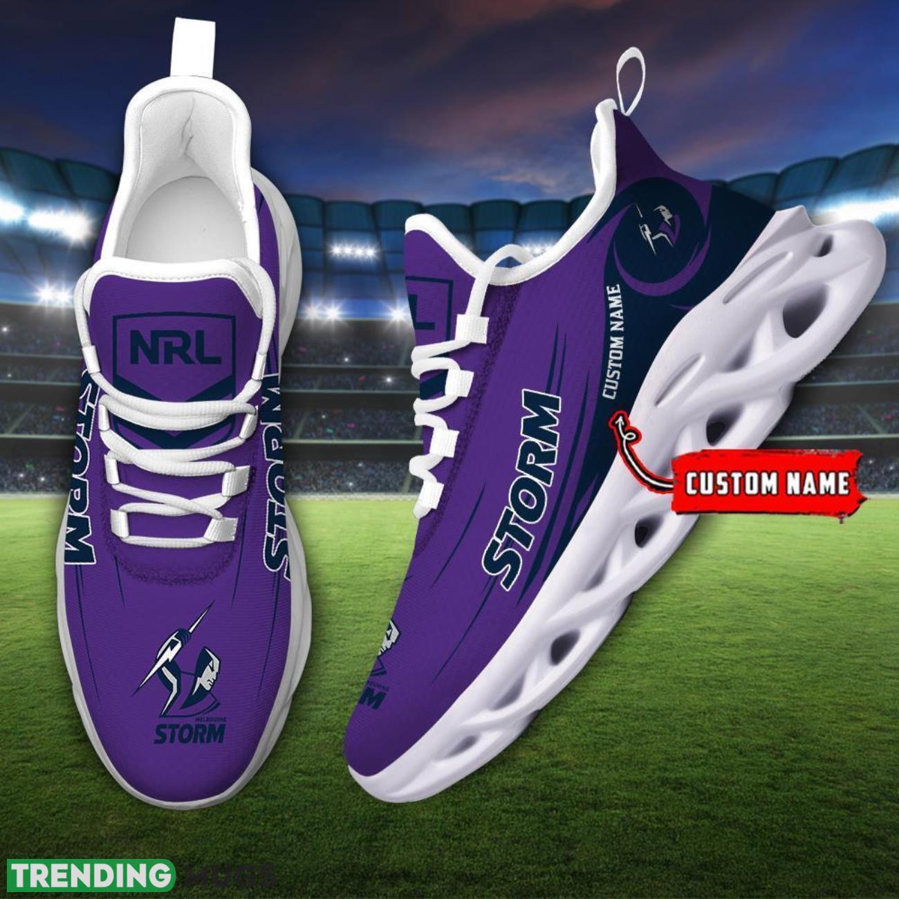 Step out in style and show your support for the Melbourne Storm NRL team with these Max Soul Shoes Sneakers. Perfect for fans who want to add a touch of team spirit to their everyday wardrobe, these custom name running shoes are a must-have for any die-hard supporter. Whether you’re hitting the gym, going for a run, or just running errands, these sneakers will keep you comfortable and on-trend. Don’t miss out on this sporty gift for yourself or your favorite Storm fan!
