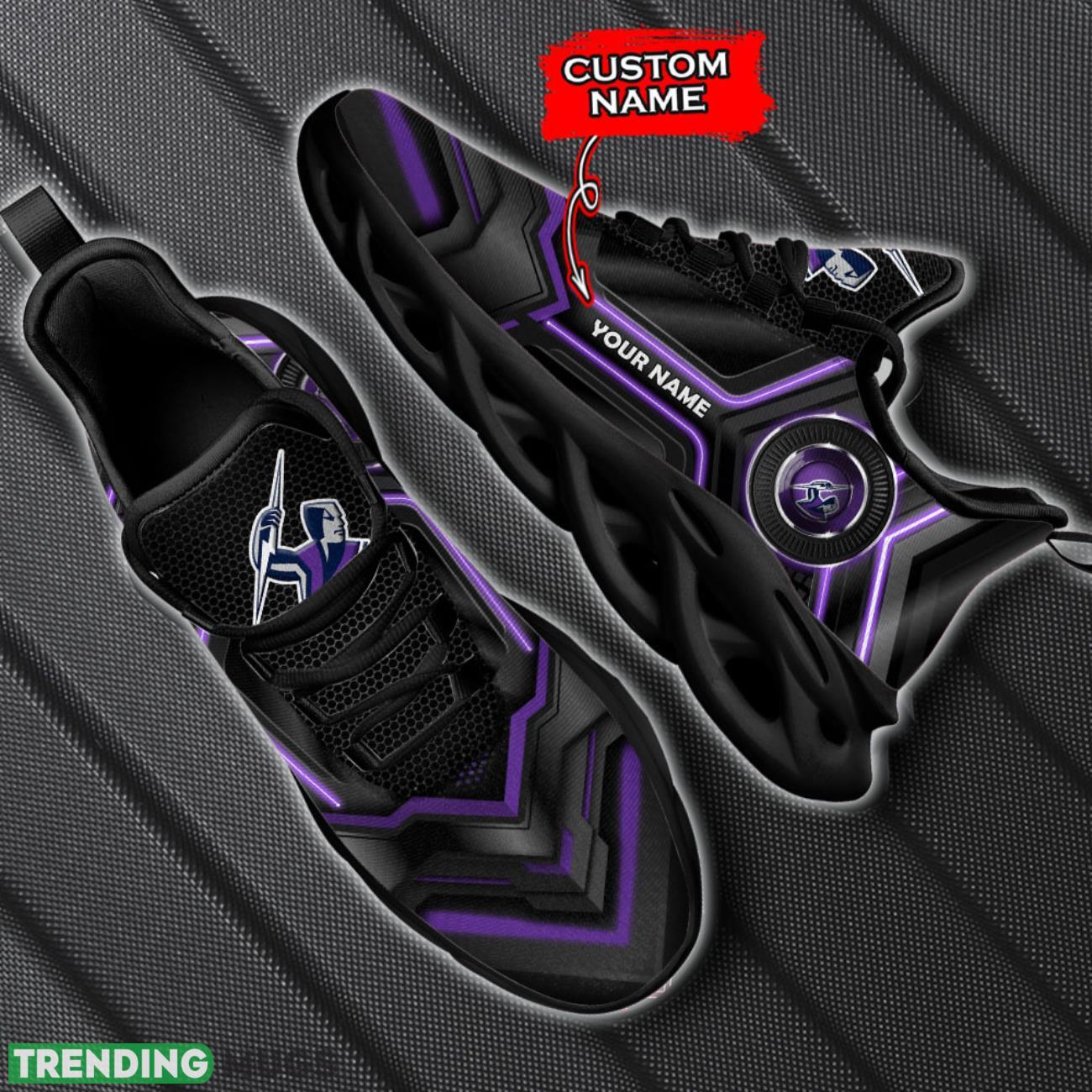 Elevate your fan game with our Melbourne Storm NRL Max Soul Shoes Sneakers! These ultra-comfortable sneakers are not only stylish but also fully personalized with your name – making them the perfect gift for any die-hard rugby league enthusiast. Whether you’re hitting the gym or cheering on your favorite team, these shoes will keep you looking and feeling your best. Don’t miss out on this unique opportunity to show off your team pride in style!