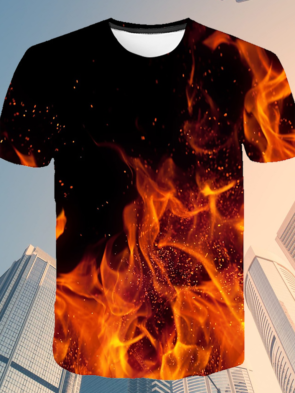 Men_s T shirt Tee Shirt Graphic Flame Round Fuchsia Orange Club Beach Short Sleeve Print Clothing – 050423-231735