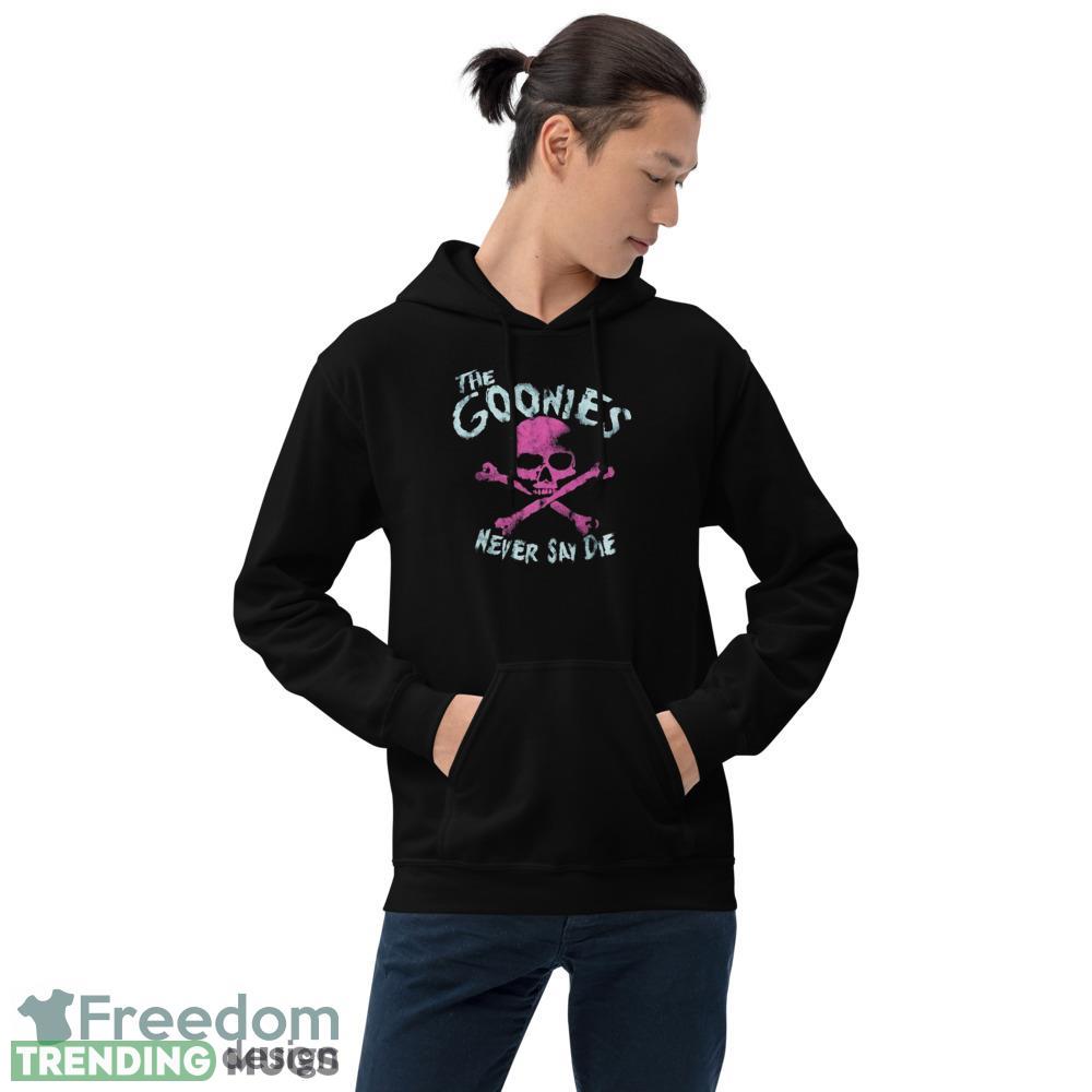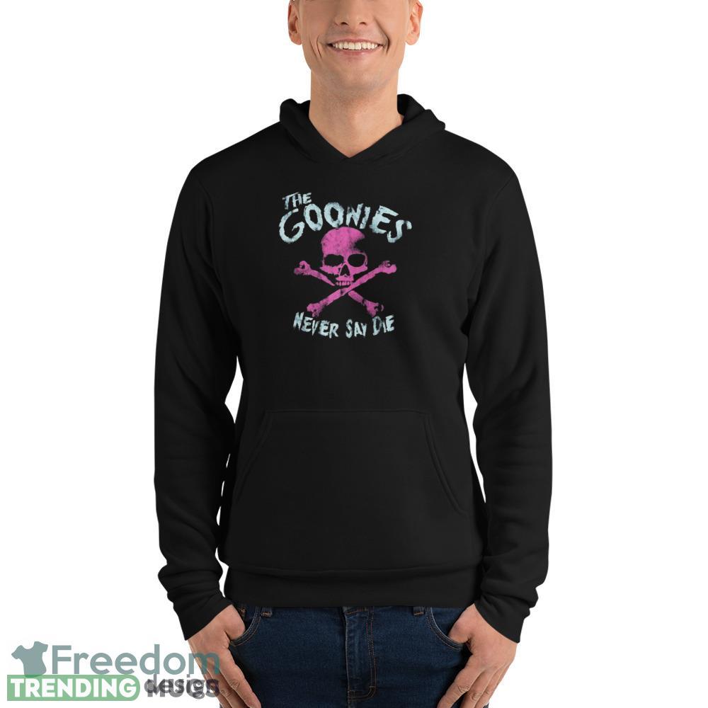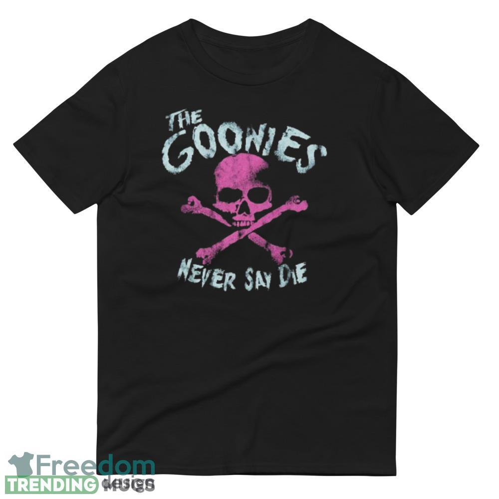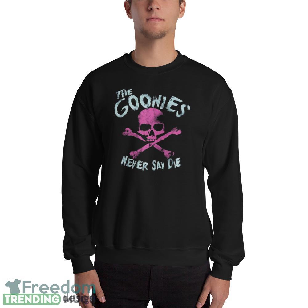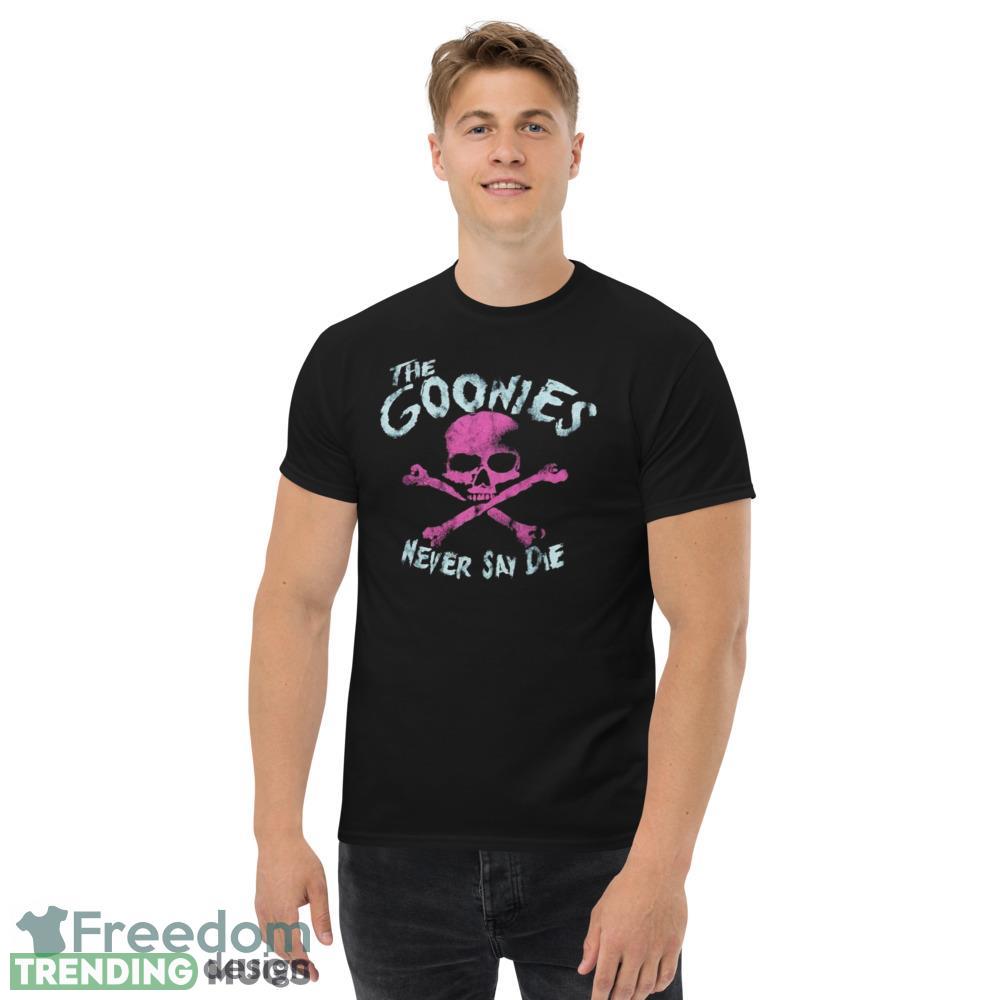 Featuring the iconic “Never Say Die” slogan, this shirt is a statement piece that will show off your love for the adventurous and endearing characters of The Goonies. The bold graphics on this tee are sure to turn heads and make you stand out in a crowd.