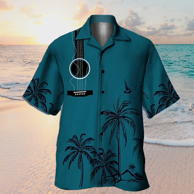 The Mens Shirt Summer Hawaiian Shirt Coconut Tree Prints Guitar Cuban Collar Casual Holiday Print Clothing Fashion Hawaiian is the ultimate summertime statement piece that every stylish man needs in his wardrobe. This stunning shirt is crafted from high-quality materials that ensure both durability and comfort, making it perfect for all-day wear during your tropical island vacation or beach outing.