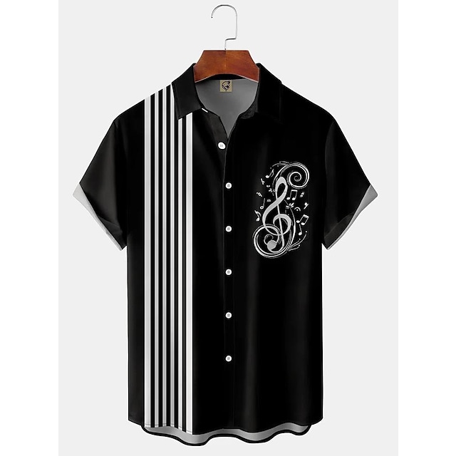 Mens Shirt Summer Hawaiian Shirt Letter Graphic Prints Guitar TurnStreet Print Clothing Vintage Fashion Streetwear Designer Details: