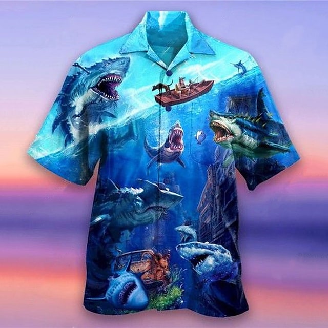 Mens Shirt Summer Hawaiian Shirt Shark Prints Turn Outdoor Streets Print Clothing Fashion Hawaiian Designer – 100423-144751