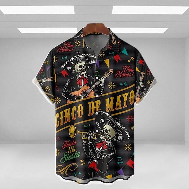 The Mens Shirt Summer Hawaiian Shirt Skull Graphic Prints Musical Instrument TurnOutdoor Street Print Clothing Tropical Fashion Hawaiian Designer is perfect for any occasion, from a day at the beach to a night out on the town. The shirt is easy to style and can be paired with shorts, jeans, or chinos for a complete look.