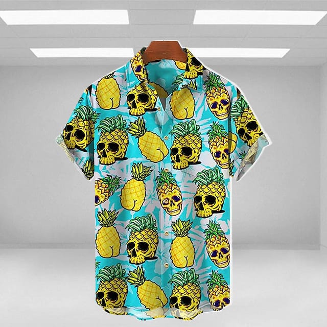 Mens Shirt Summer Hawaiian Shirt Skull Pineapple Graphic Prints TurnOutdoor Street Print Clothing Tropical Fashion Hawaiian Designer – 100423-145220