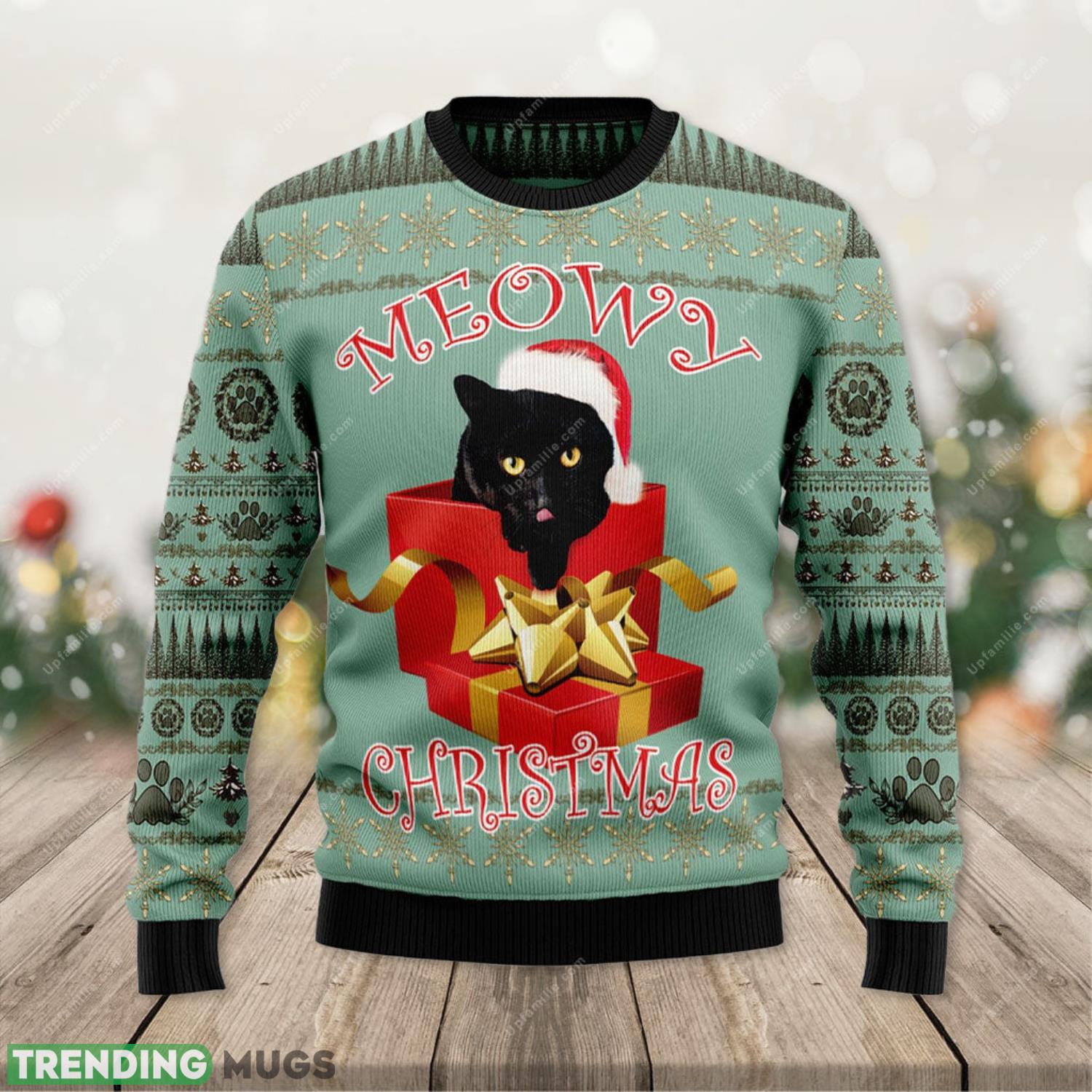 Meowy Christmas Black Cat Ugliest Christmas Sweater Ever 3S Sweater Presents Christmas For Men And Women Product Photo 1