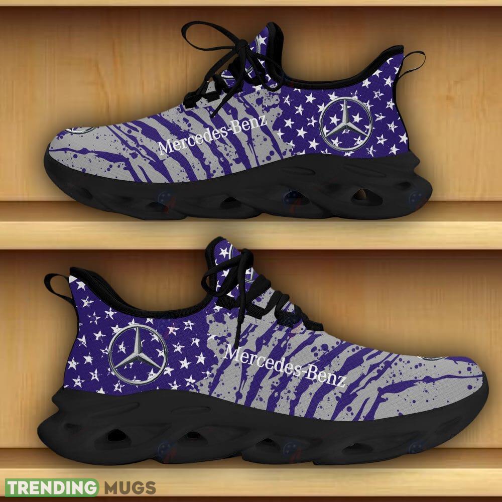 This Mercedes Benz Car And Motorcycle Racing Sport Shoes Purple Max Soul Sneakers For Men Women is a breathable, lightweight, and comfortable casual outdoor shoe that has a unique design. It is made of a mesh fabric which makes it sweat absorbent and breathable, while the rubber bottom ensures traction, comfort, and durability. It is available in two colors: black or white sole. There are two styles of shoelace holes so you can choose your preference.