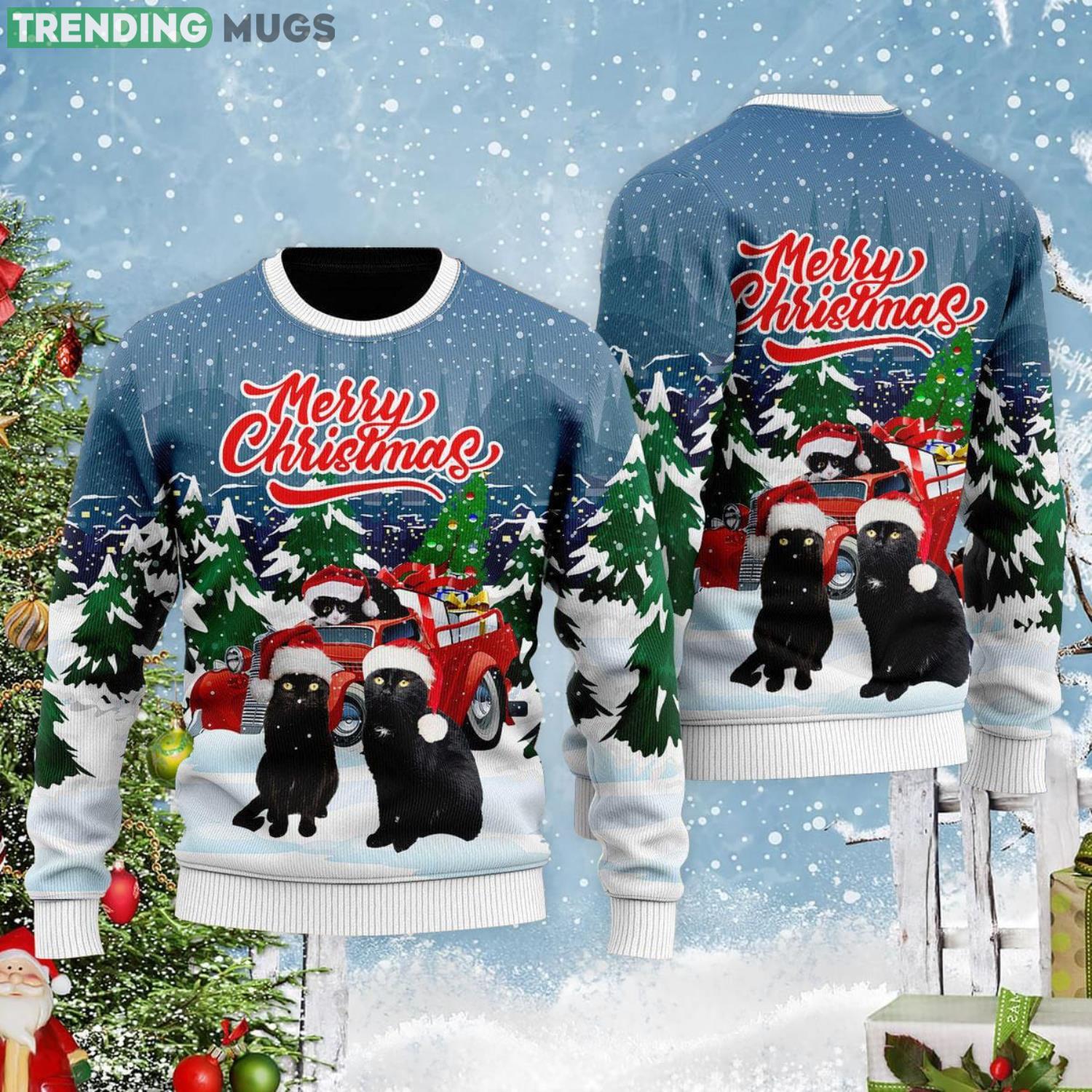Merry Christmas Black Cat And Red Car Christmas Gift Ugly Christmas Sweater Informations: