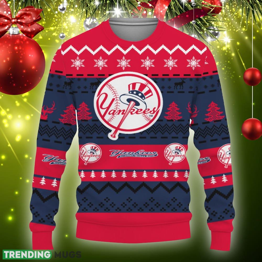 Merry Christmas Snow Pattern Funny Cute New York Yankees Gifts Knitted Xmas 3D Sweater Gift Holidays