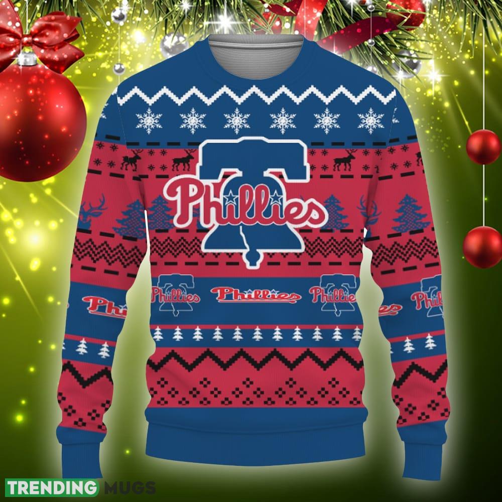 Merry Christmas Snow Pattern Funny Cute Philadelphia Phillies Gifts Ugly Christmas Sweater AOP Gift Holidays Informations: