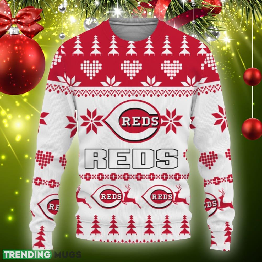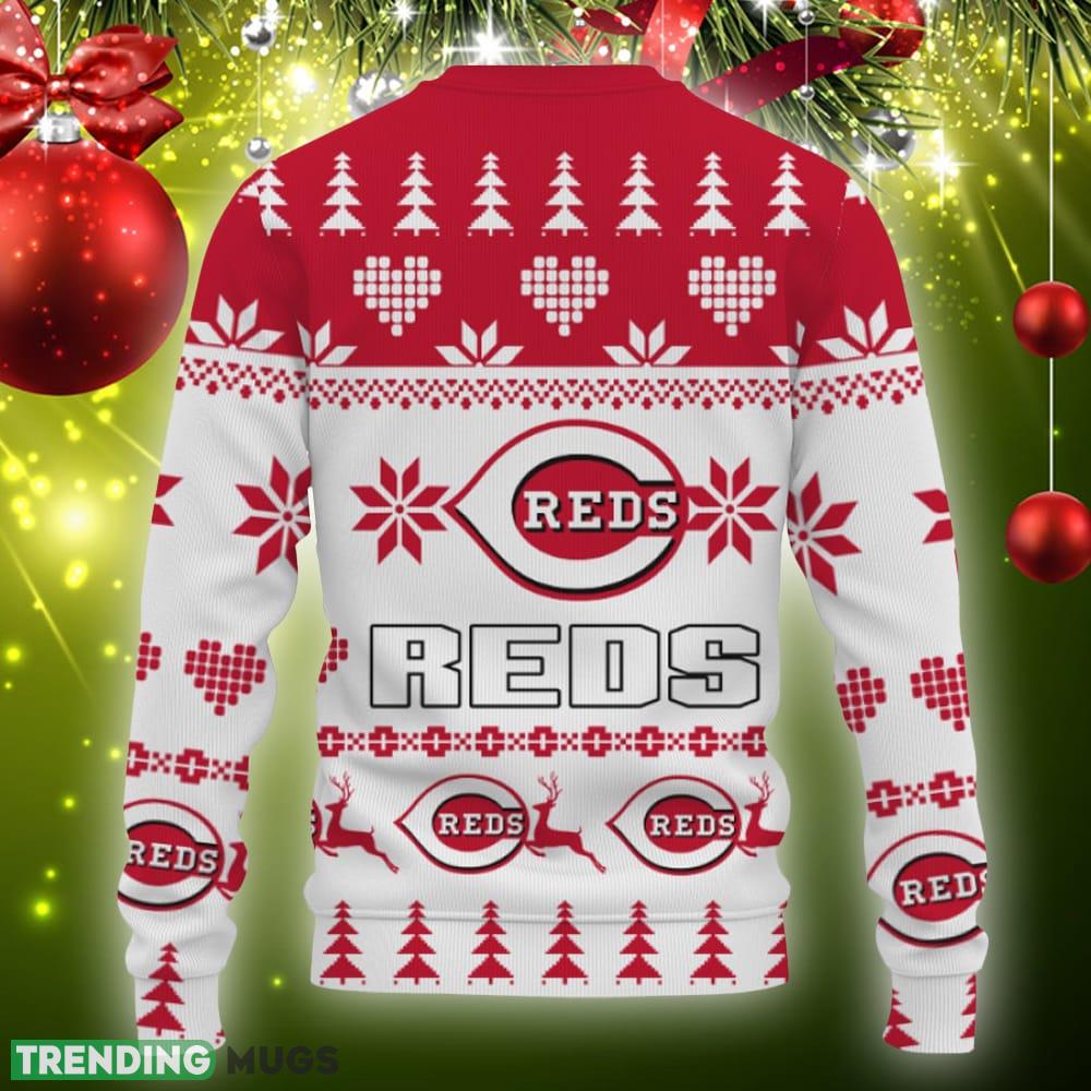 Crafted with love and attention to detail, this cozy knitted sweater showcases a whimsical Christmas tree design, complete with the iconic Cincinnati Reds logo. The vibrant colors and intricate patterns will surely catch the eye of fellow Reds enthusiasts, making it a standout piece at any holiday gathering.