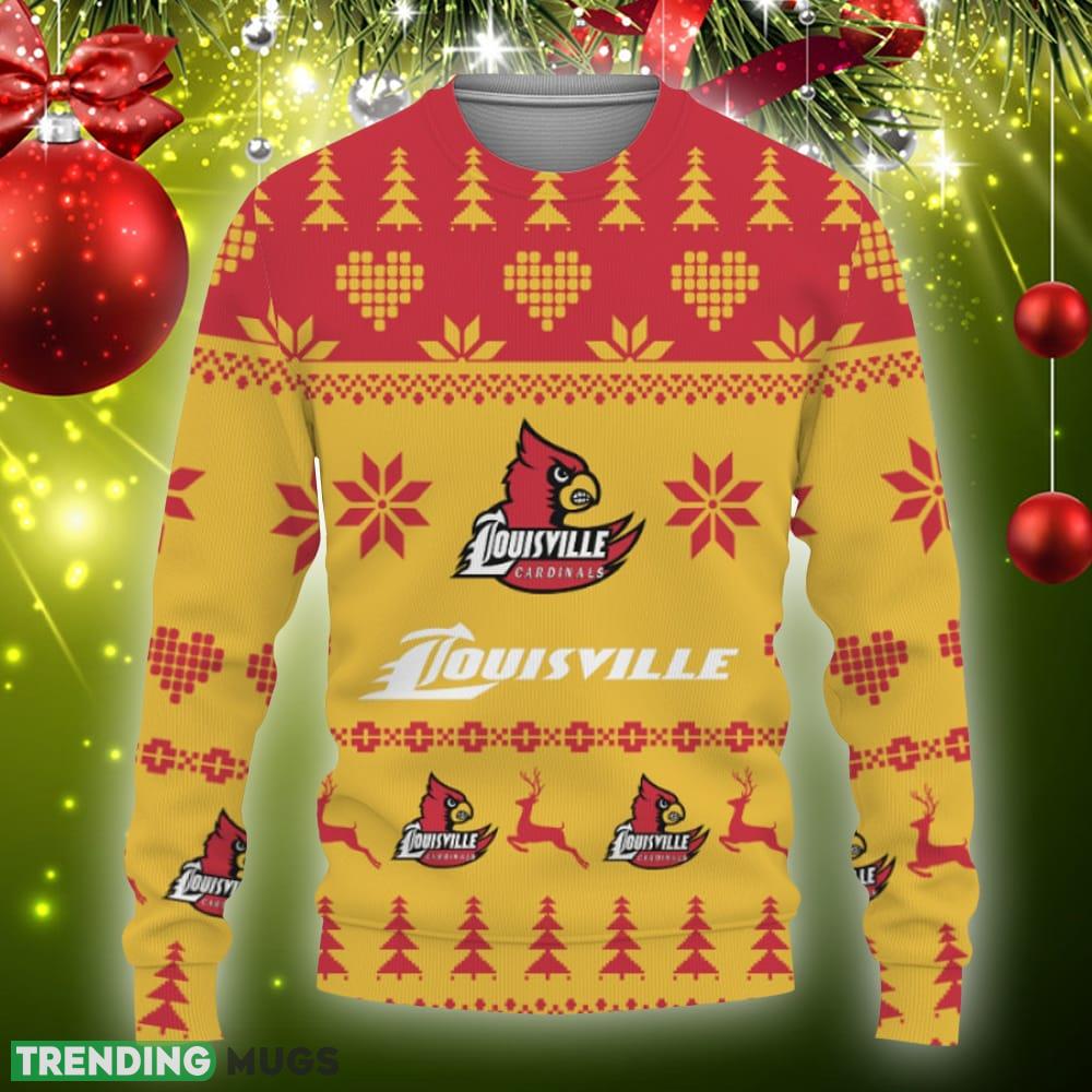 Merry Funny Louisville Cardinals Gifts For Fan Merry Christmas Tree Ugly Christmas Sweater Gift Holidays 3D Sweater