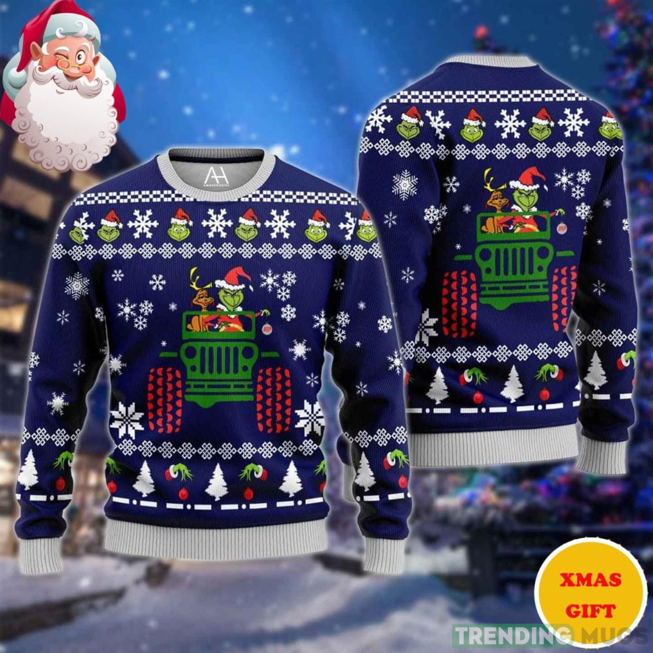 Merry Grinchmas The Grinch With Dog Driving Jeep Christmas AOP Sweater Informations: