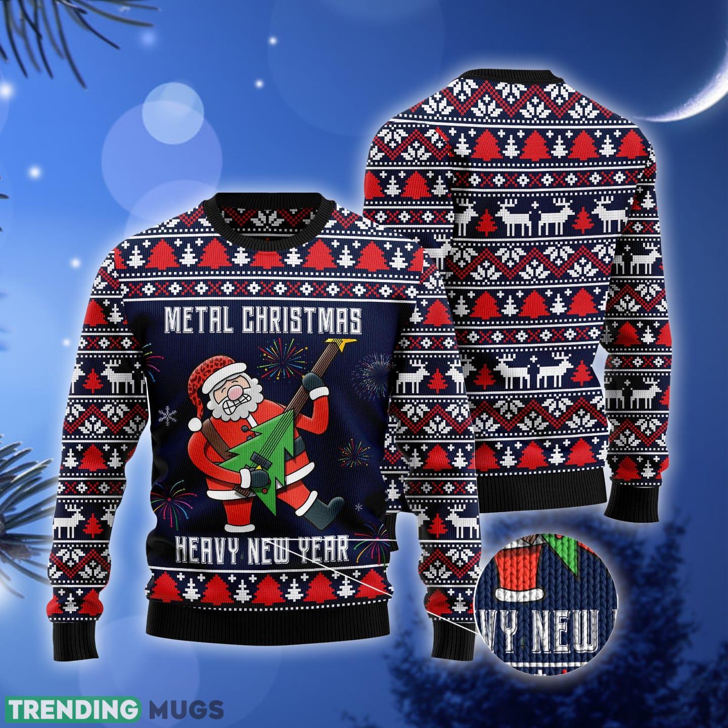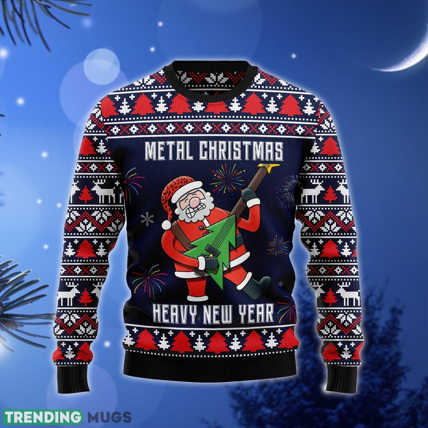 Get ready to rock the holiday season with our Metal Heavy New Year Ugly Christmas Sweater Gift for Men and Women! This one-of-a-kind sweater is the perfect combination of festive cheer and head-banging fun.