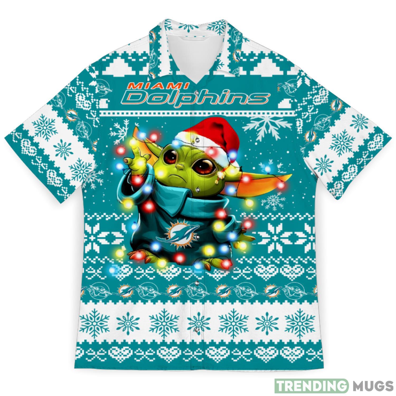 Miami Dolphins Baby Yoda Star Wars Ugly Christmas Sweater Pattern 3D Hawaiian Shirt Christmas Gift Hawaiian Shirt