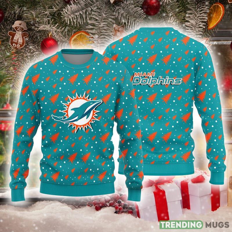 Miami Dolphins Christmas Pine Tree Patterns Pattern Knitted Ugly Christmas Sweater AOP Gift For Men And Women Informations: