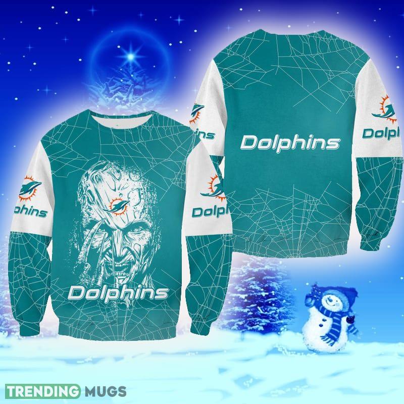 Miami Dolphins Freddy Krueger Hallowen Edition Unisex Warmth Ugly Sweater For Men And Women Gift Fans Christmas 3D Sweater