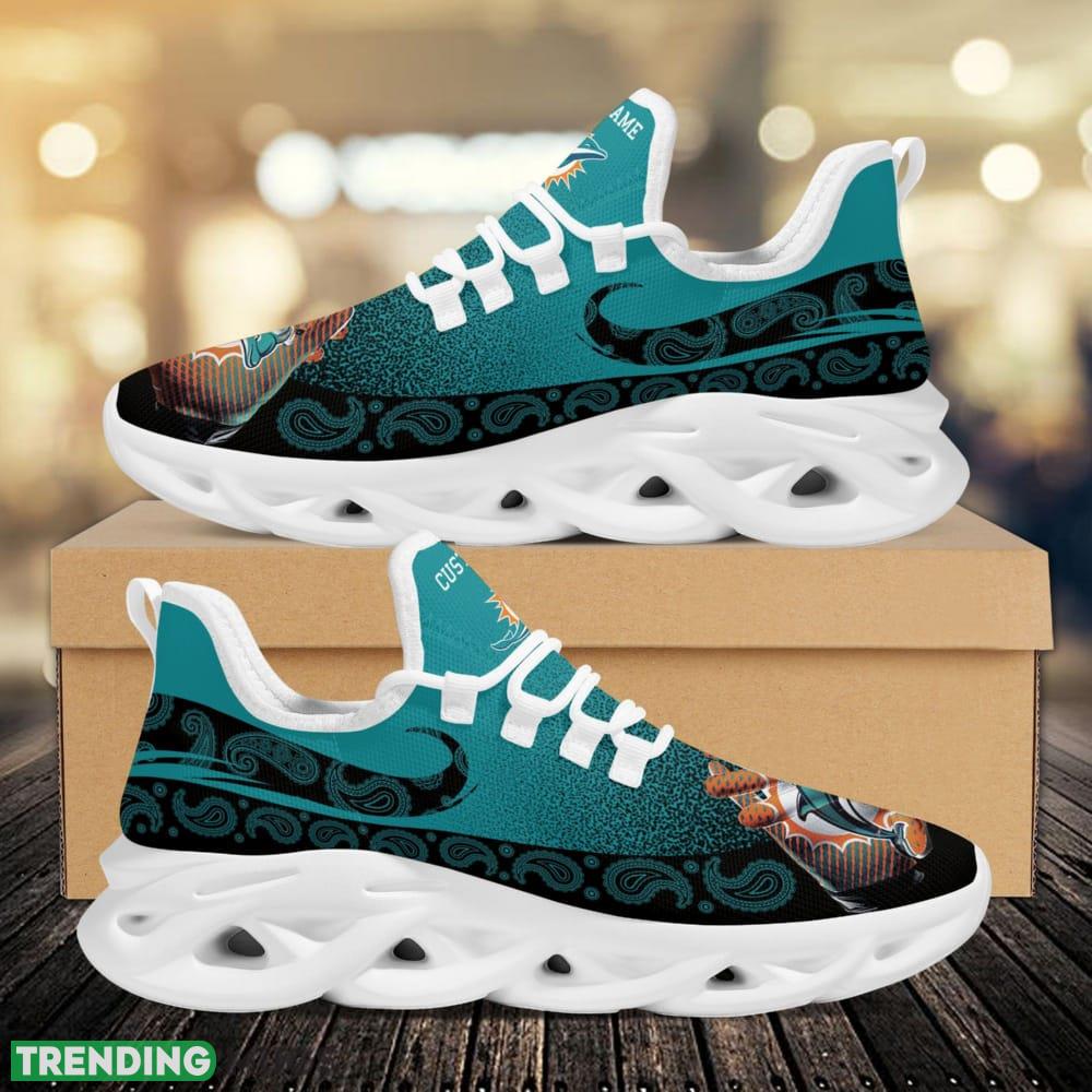 Don’t miss out on this opportunity to elevate your Dolphins fan gear to the next level. Order your very own Miami Dolphins Logo Pattern Custom Name 3D Max Soul Sneaker Shoes in Aqua Green today and step up your game both on and off the field. Show the world that your love for the Dolphins knows no bounds.