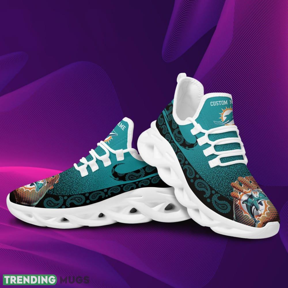 Miami Dolphins Logo Pattern Custom Name 3D Max Soul Sneaker Shoes In Aqua Green information: