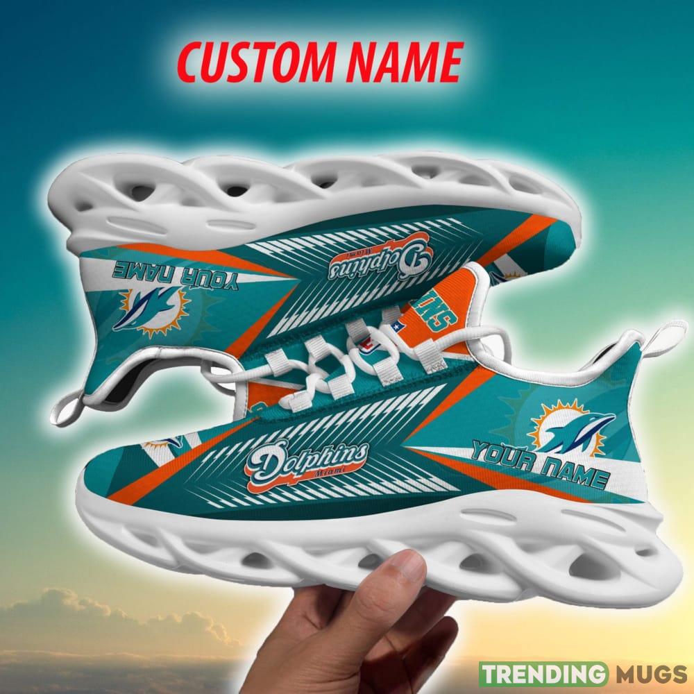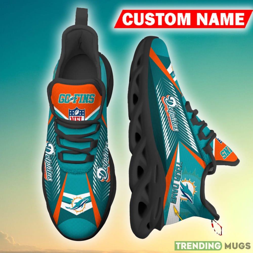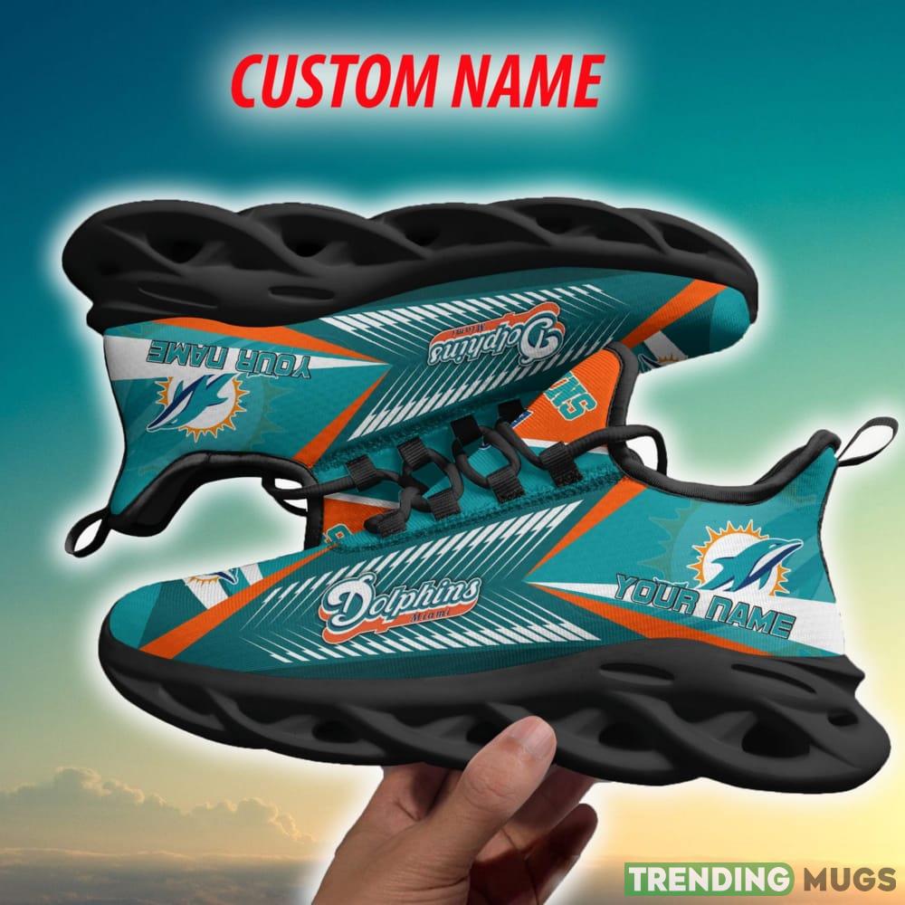 Crafted with utmost attention to detail, these Max Soul Sneakers feature the iconic Miami Dolphins logo, making them a must-have for any die-hard fan. The personalized touch adds a unique flair, allowing you to showcase your name or the name of your favorite player on the side.