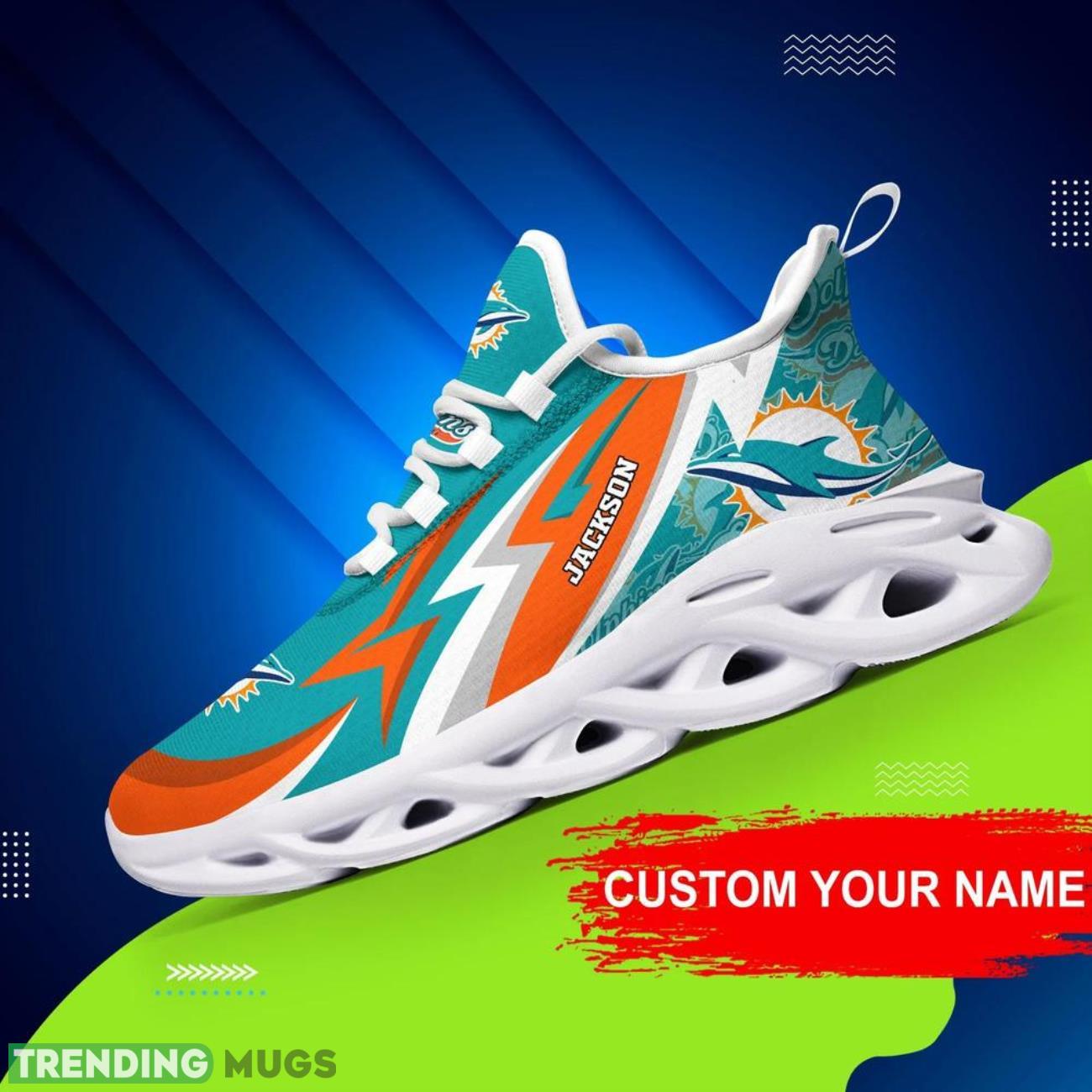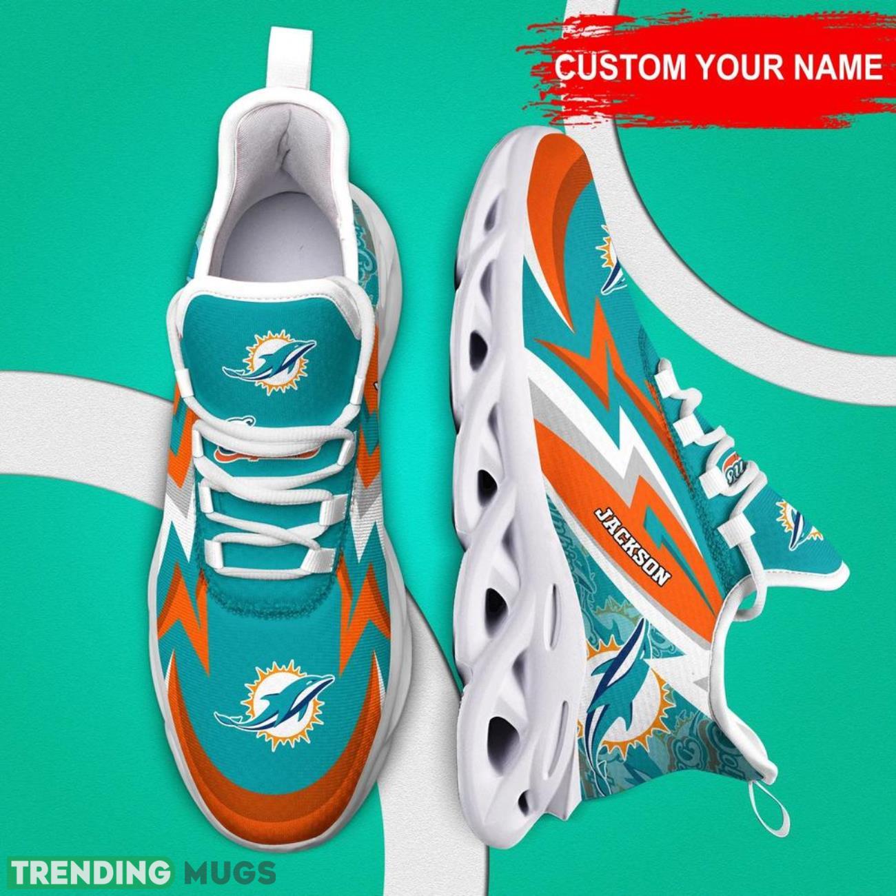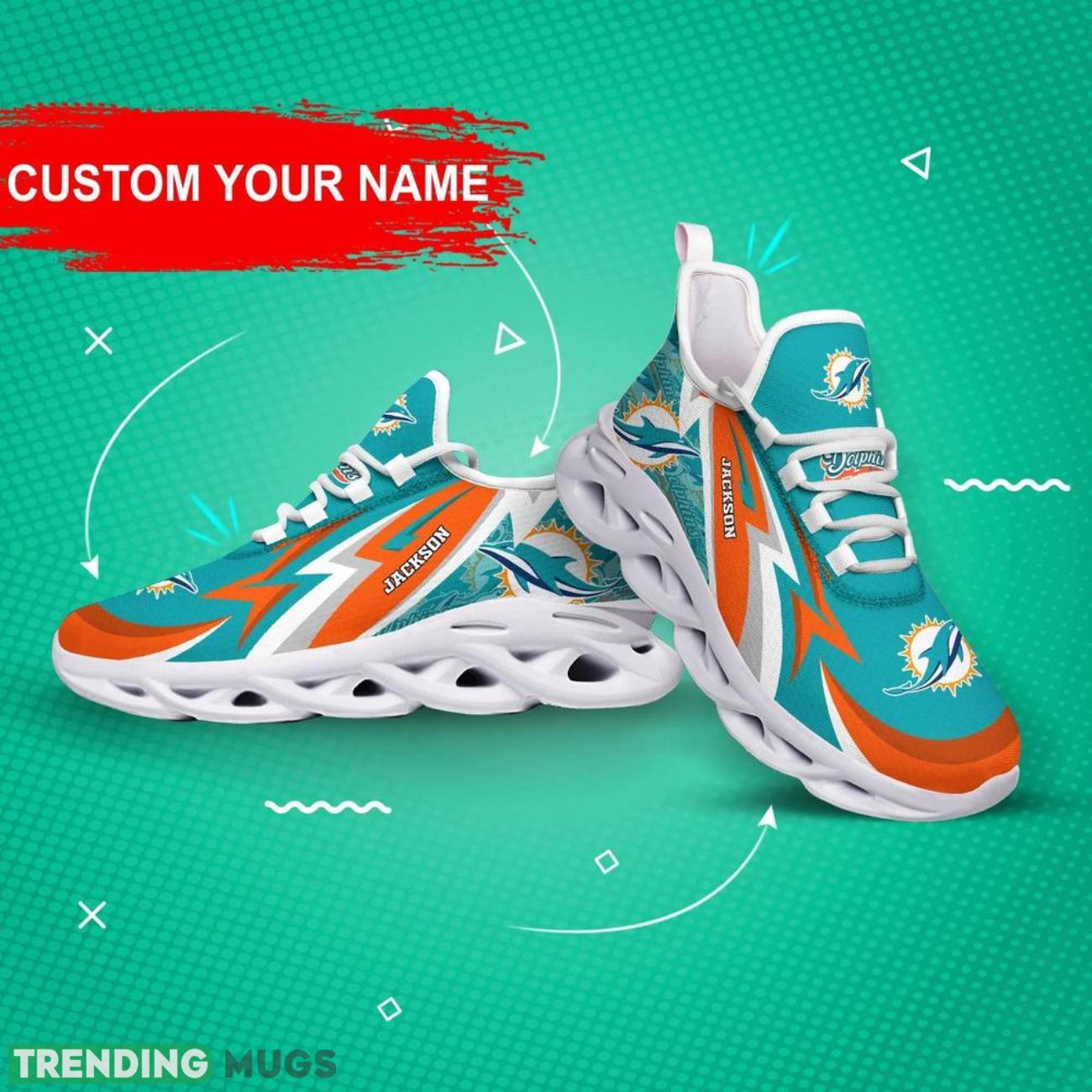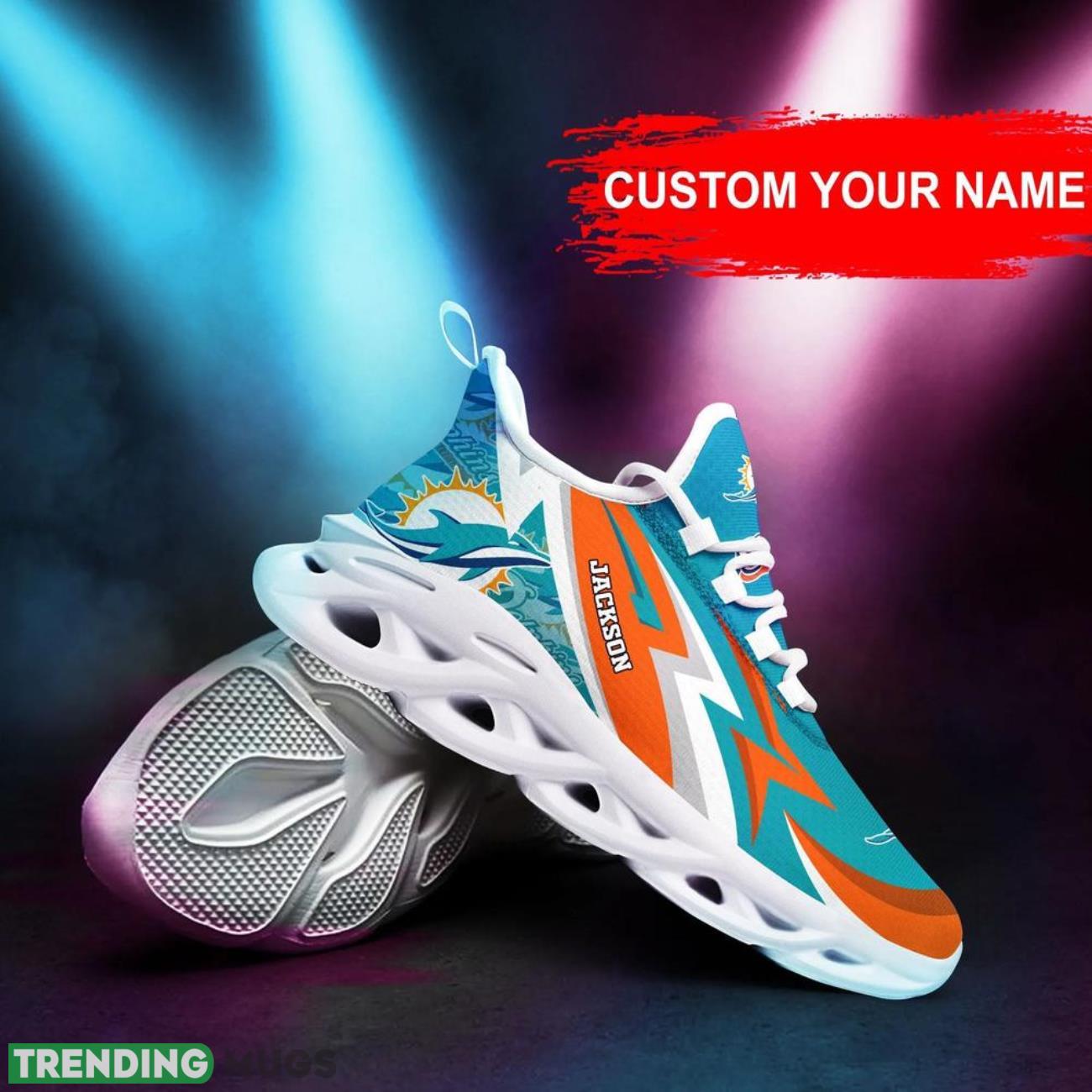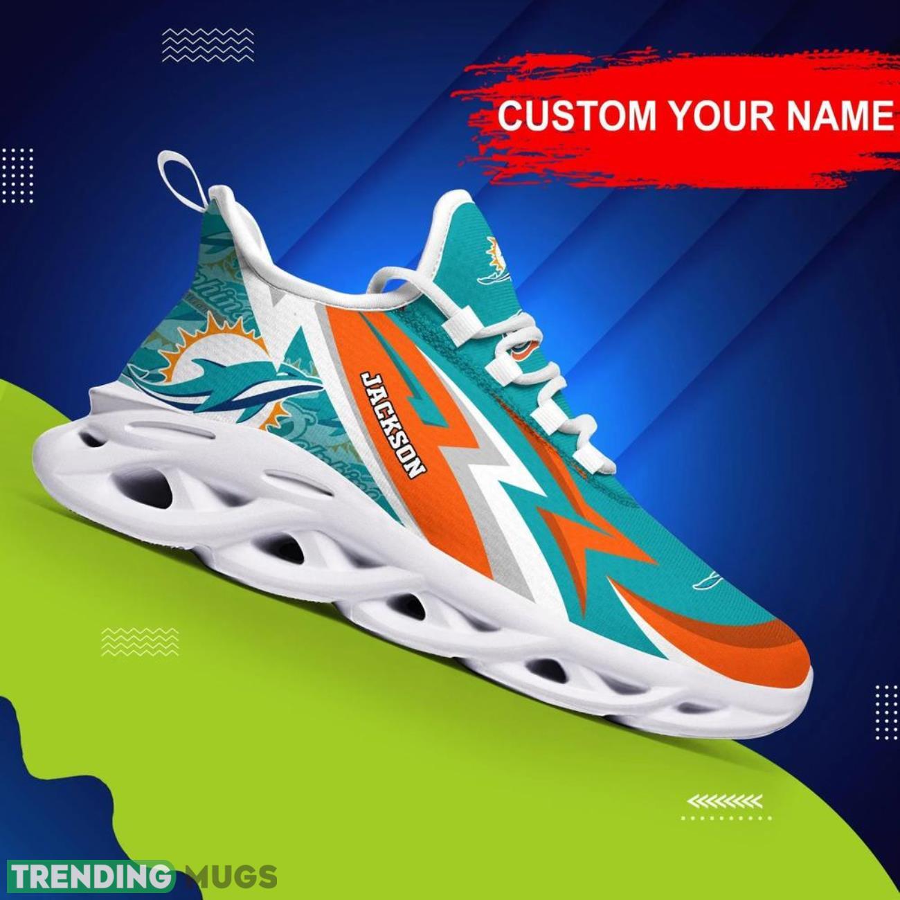 Step out in style with our Miami Dolphins NFL Logo Sport Team Max Soul Shoes Sneakers! These clunky shoes are not only trendy but also customizable with your name for a personalized touch. Perfect for any Miami Dolphins fan, these shoes make a great gift for yourself or a loved one. Show off your team spirit in a unique and fashionable way with these one-of-a-kind sneakers. Order yours today and stand out from the crowd!