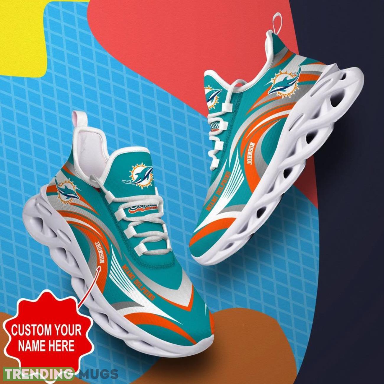 Show off your love for the Miami Dolphins with these custom name sneakers! Made for NFL’s biggest fans, these Max Soul shoes are not only stylish, but also comfortable for all-day wear. Whether you’re heading to a game or just want to rep your favorite team, these sneakers are the perfect addition to your wardrobe. Stand out from the crowd and let everyone know who you’re rooting for with these Miami Dolphins NFL Max Soul Shoes. Order yours today and step up your fan game!