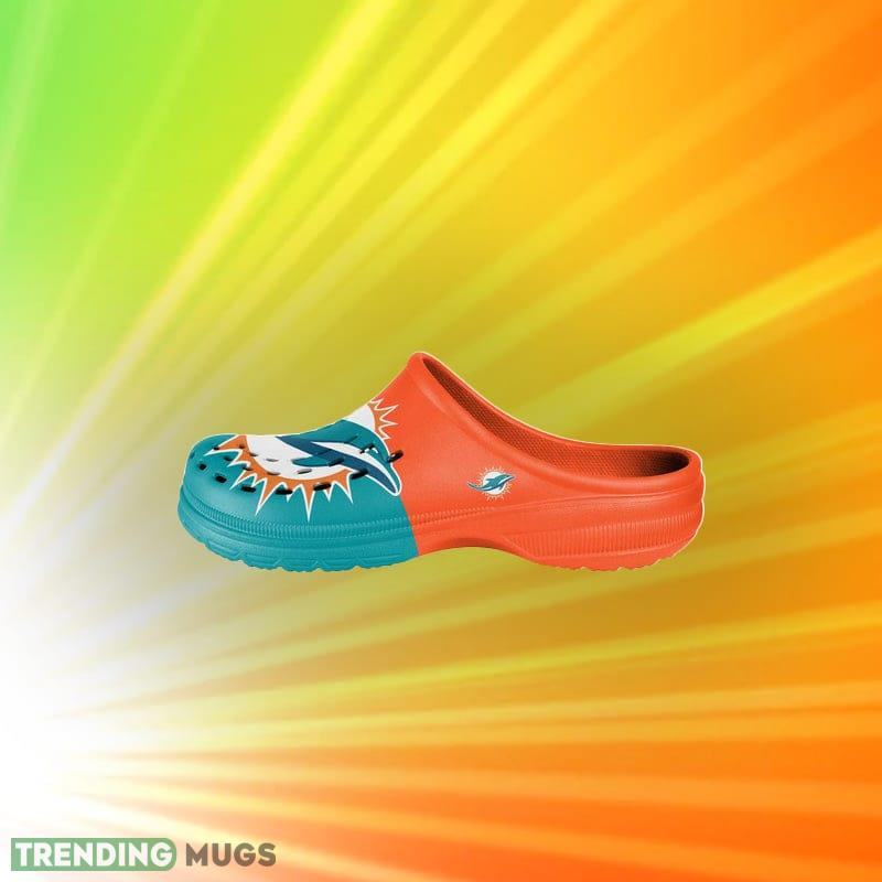 Miami Dolphins NFL Men And Women Colorblock Big Logo Clog Shoes For Fans Clog Shoes