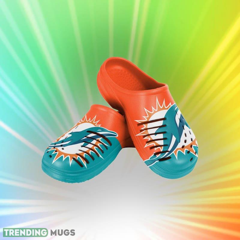 Miami Dolphins NFL Men And Women Colorblock Big Logo Clog Shoes For Fans