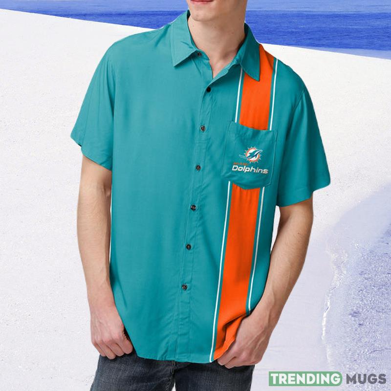 The Miami Dolphins NFL Mens Bowling Stripe Hawaiian Shirt is the perfect addition to any NFL fan’s wardrobe. Whether you’re heading to the game or just want to show off your team spirit, this shirt is sure to turn heads.