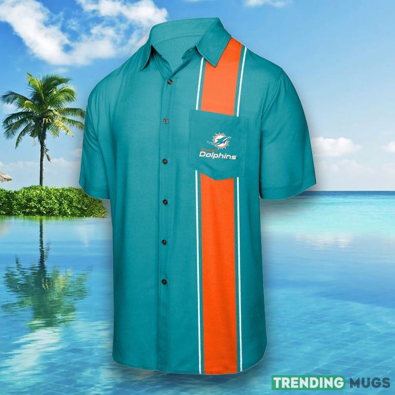 Miami Dolphins NFL Mens Bowling Stripe Hawaiian Shirt – Miami Dolphins NFL Mens Bowling Stripe Button Up Shirt_1