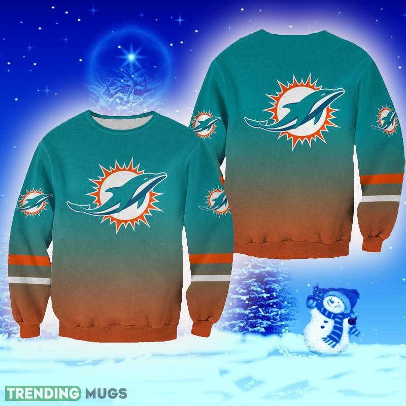 Miami Dolphins Ombre Pattern Fashionable Ugly Sweater For Men And Women Gift Fans Christmas 3D Sweater