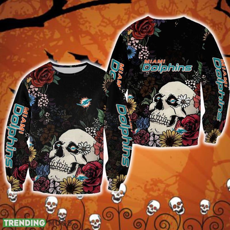 Miami Dolphins Skull And Flowers Hangings Halloween Ugly Sweater For Men And Women Gift Christmas Informations: