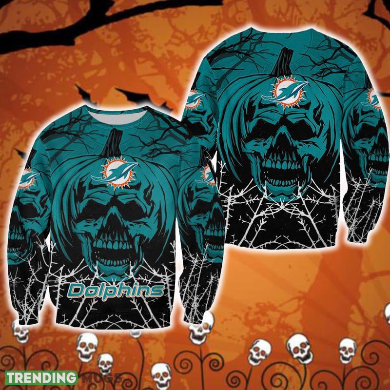 Miami Dolphins Skull Pumpkin Halloween Sweater Halloween Ugly Sweater For Men And Women Gift Christmas 3D Sweater
