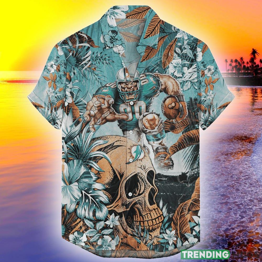 Miami Dolphins Tropical Skull NFL Design 3 Beach Hawaiian Shirt Men And Women For Fans Gift Details: