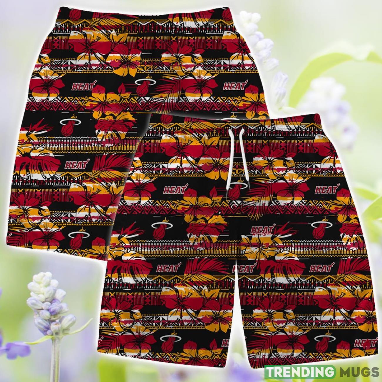 Miami Heat Hawaii Set Pattern Vintage 3D Hawaiian Shirt And Shorts Details: