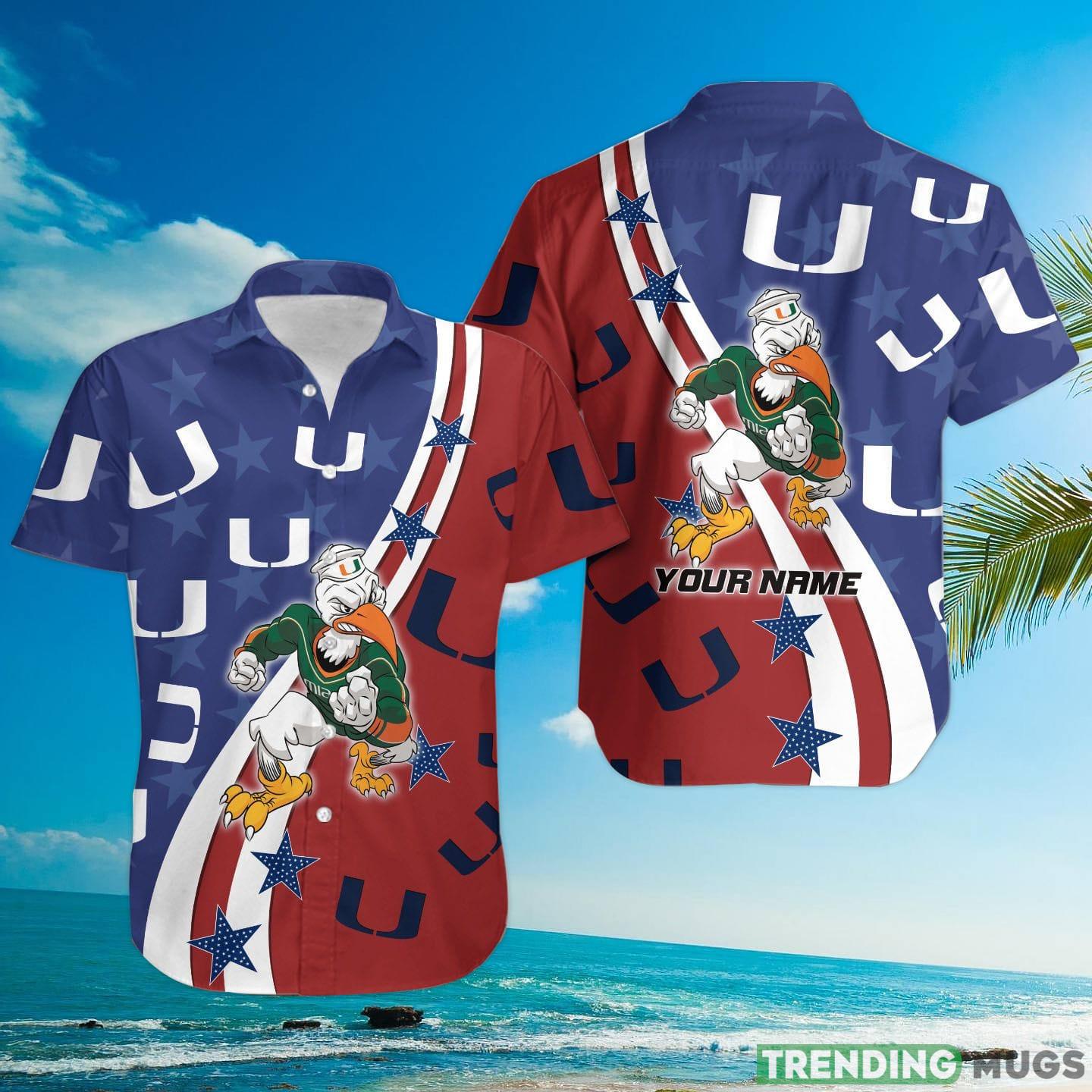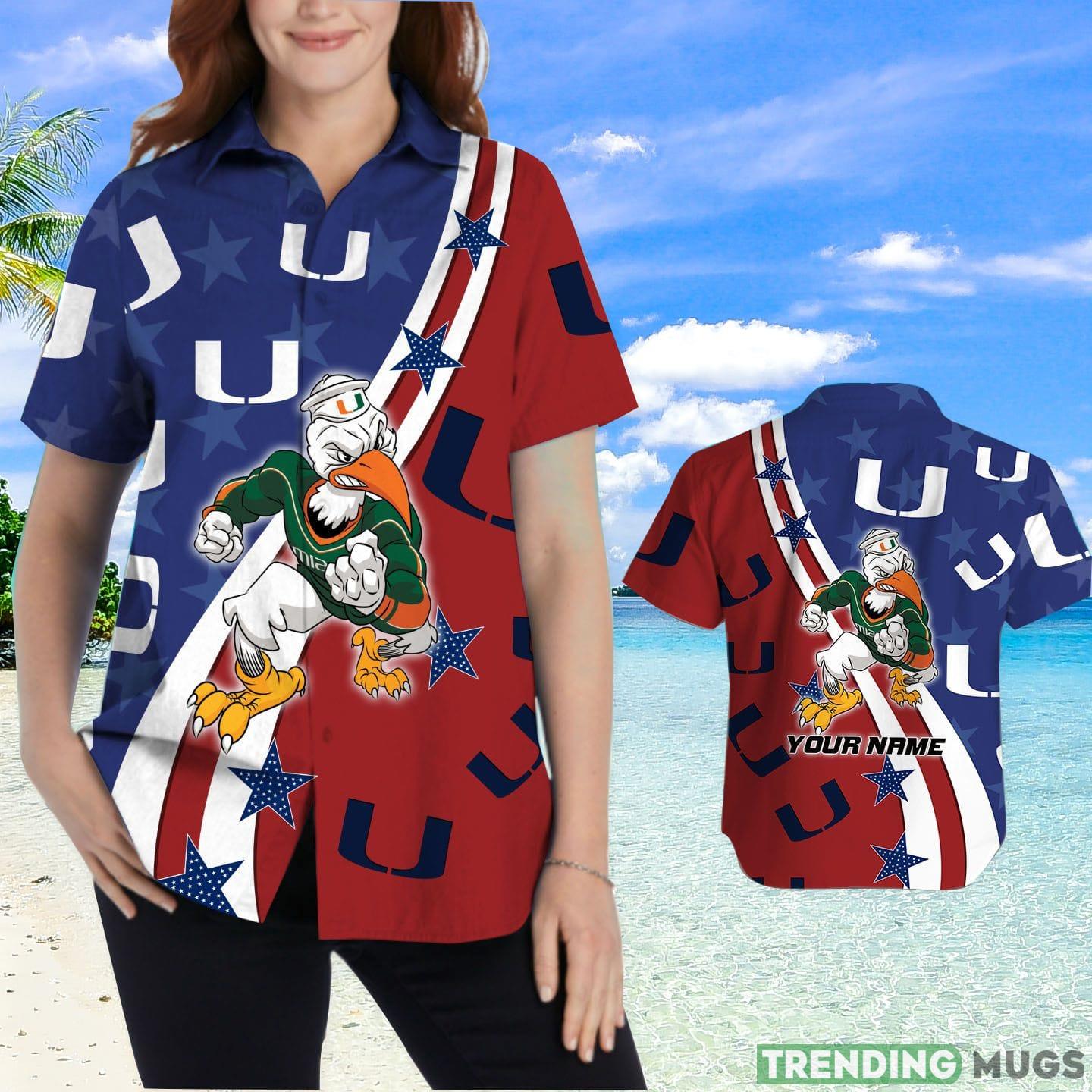 Miami Hurricanes American Flag Custom Name Hawaiian Shirt Details: