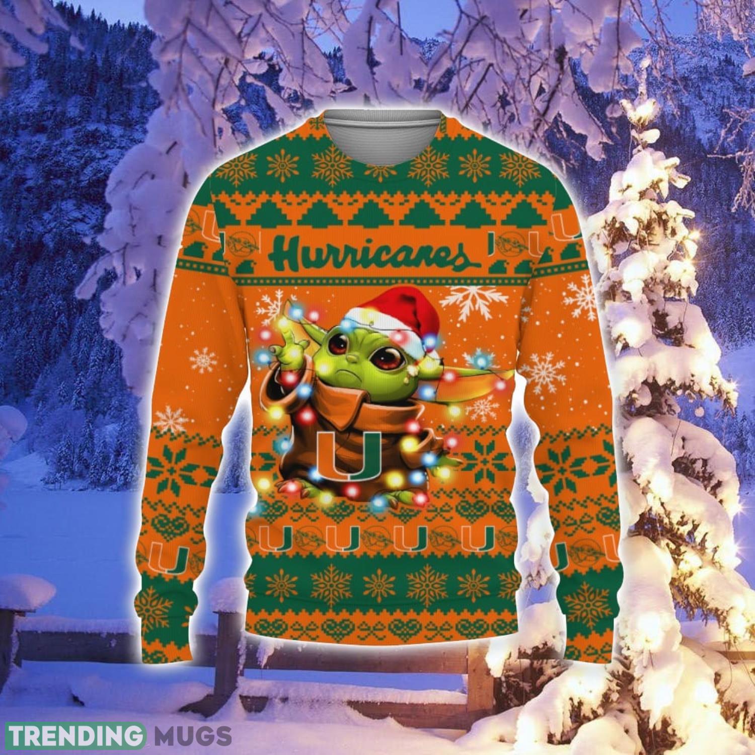 Miami Hurricanes Baby Yoda Star Wars Sports Football American Ugly Christmas Sweater Christmas Holiday Gift Product Photo 1