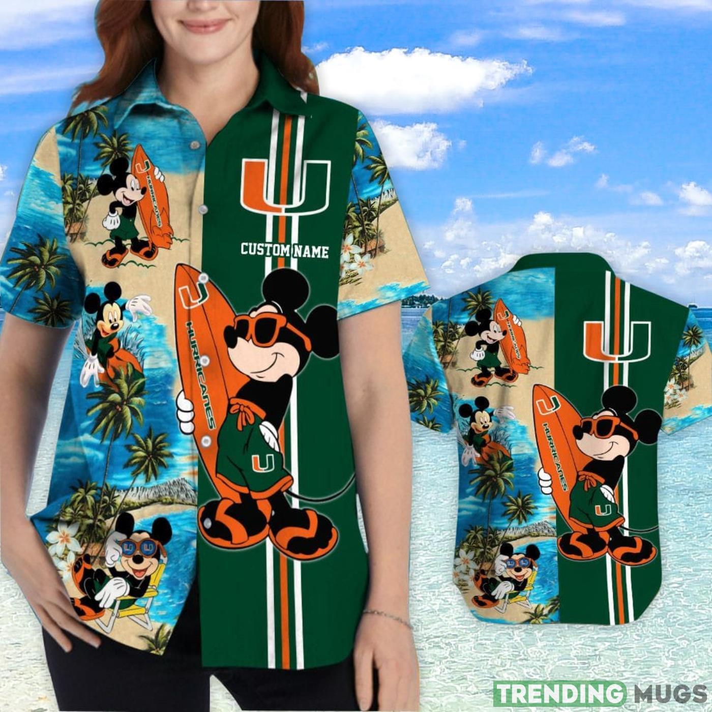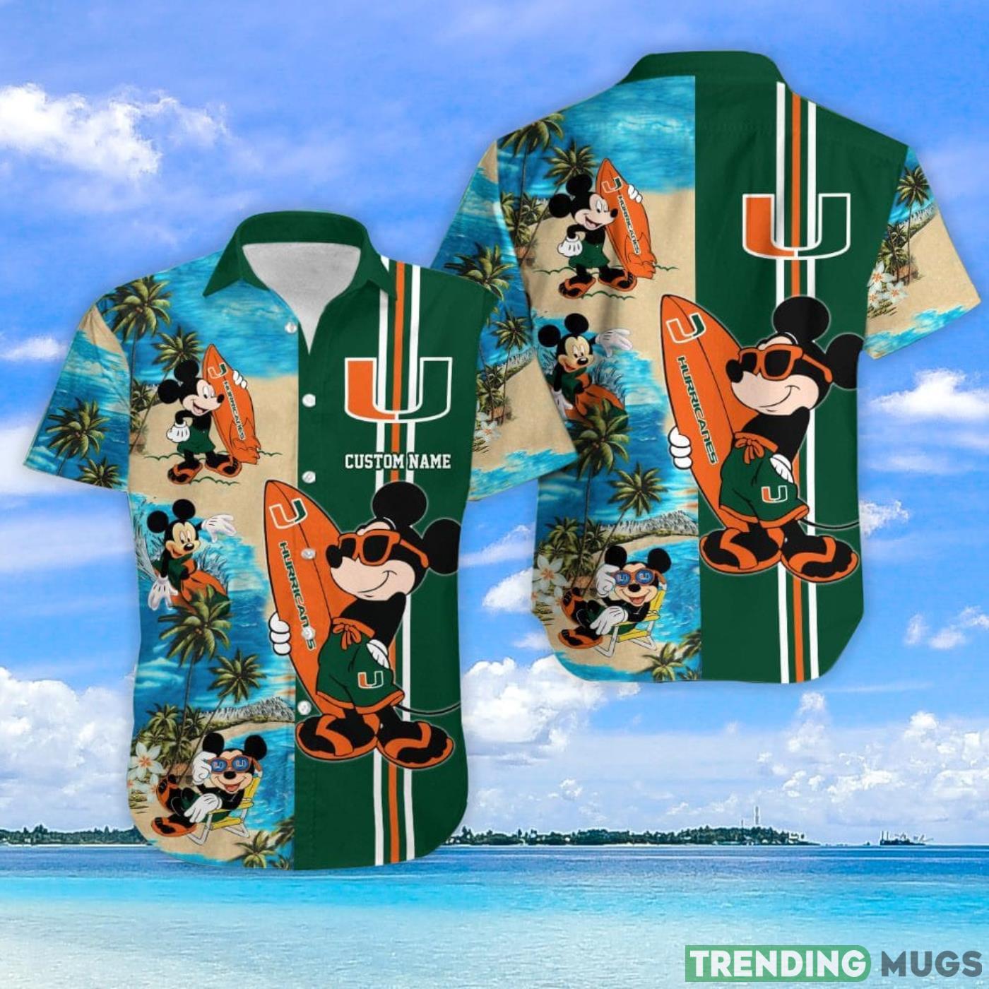 Miami Hurricanes Mickey Surfing Lover Custom Name Hawaiian Shirt Details: