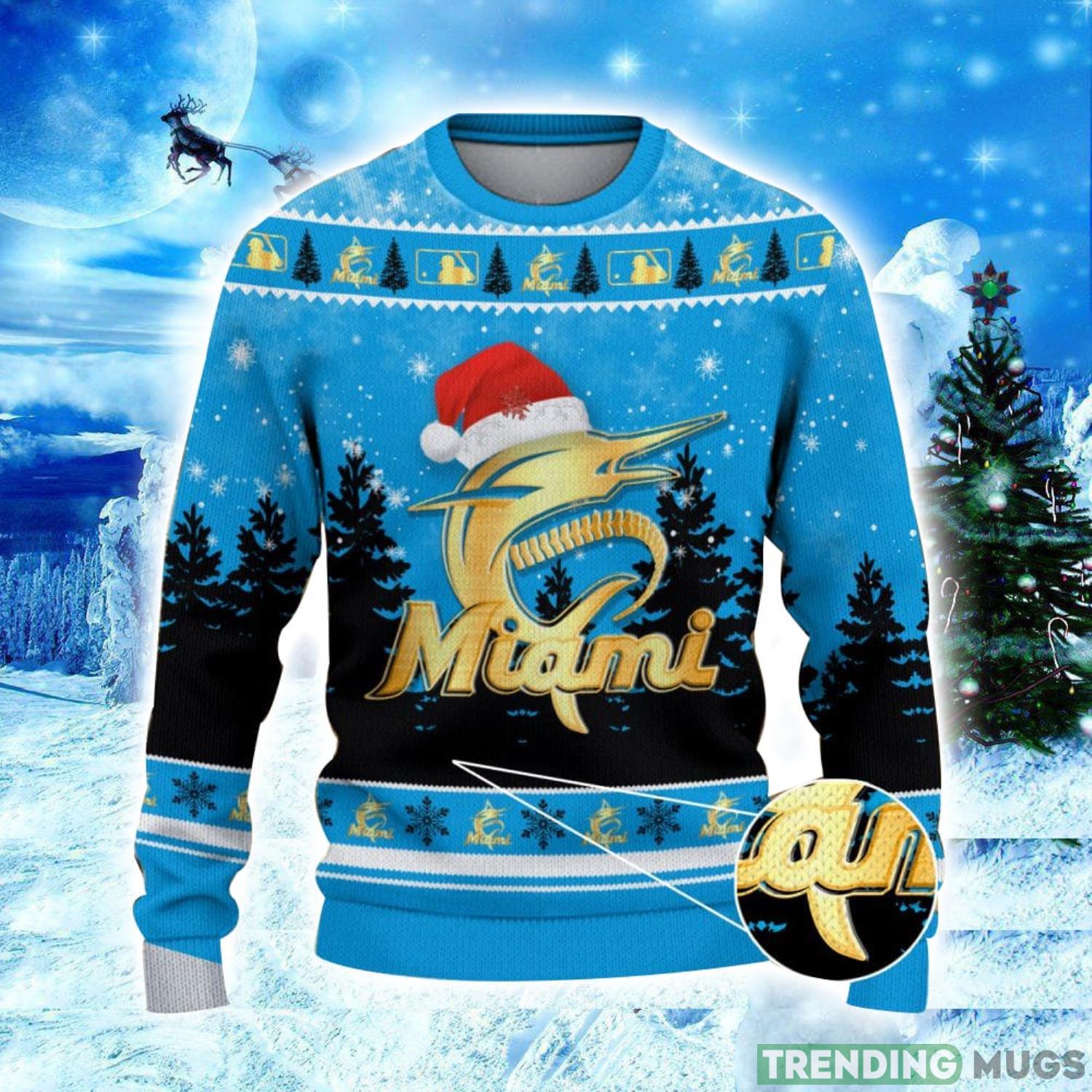 Miami Marlins Logo Wearing Santa Hat Christmas Gift Ugly Christmas Sweater Christmas Gift Ideas Product Photo 1