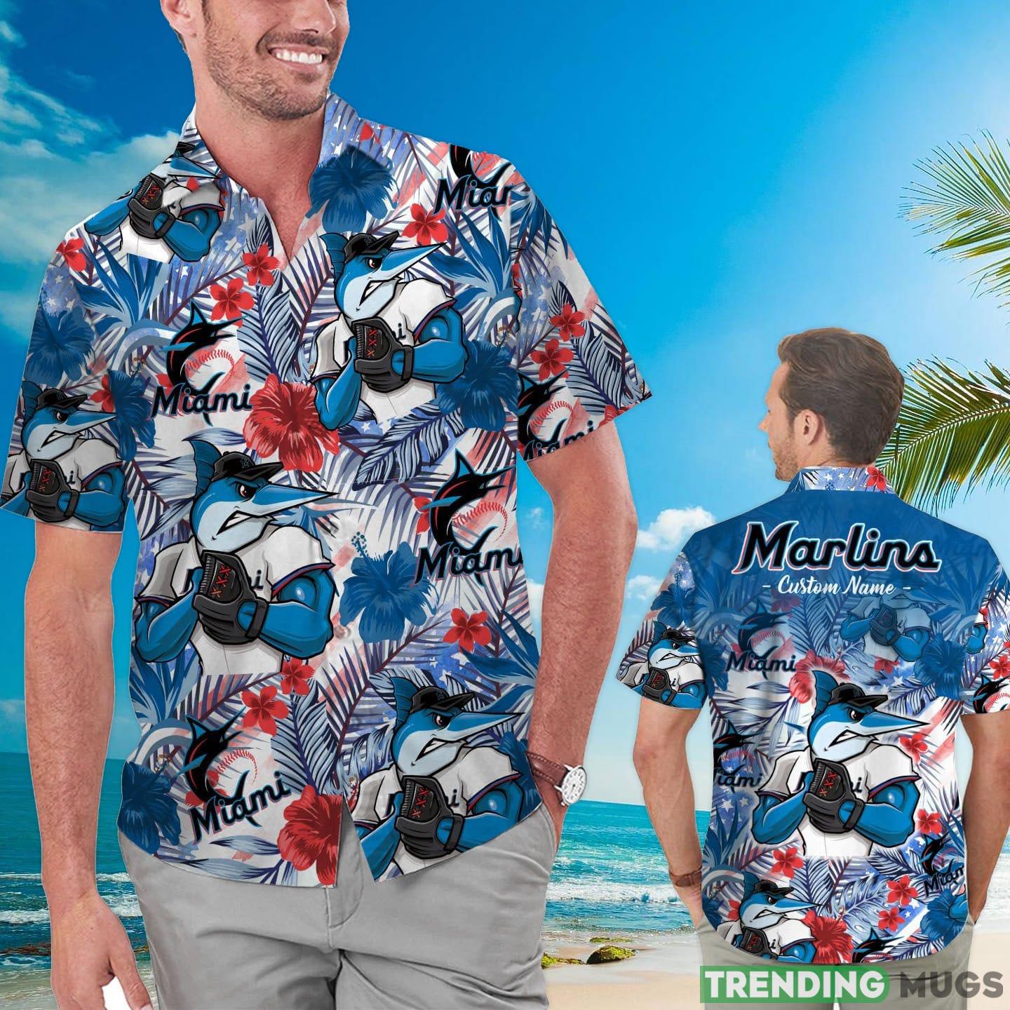 Some of the Miami Marlins Tropical Floral Custom Name Aloha Hawaiian Shirt photos