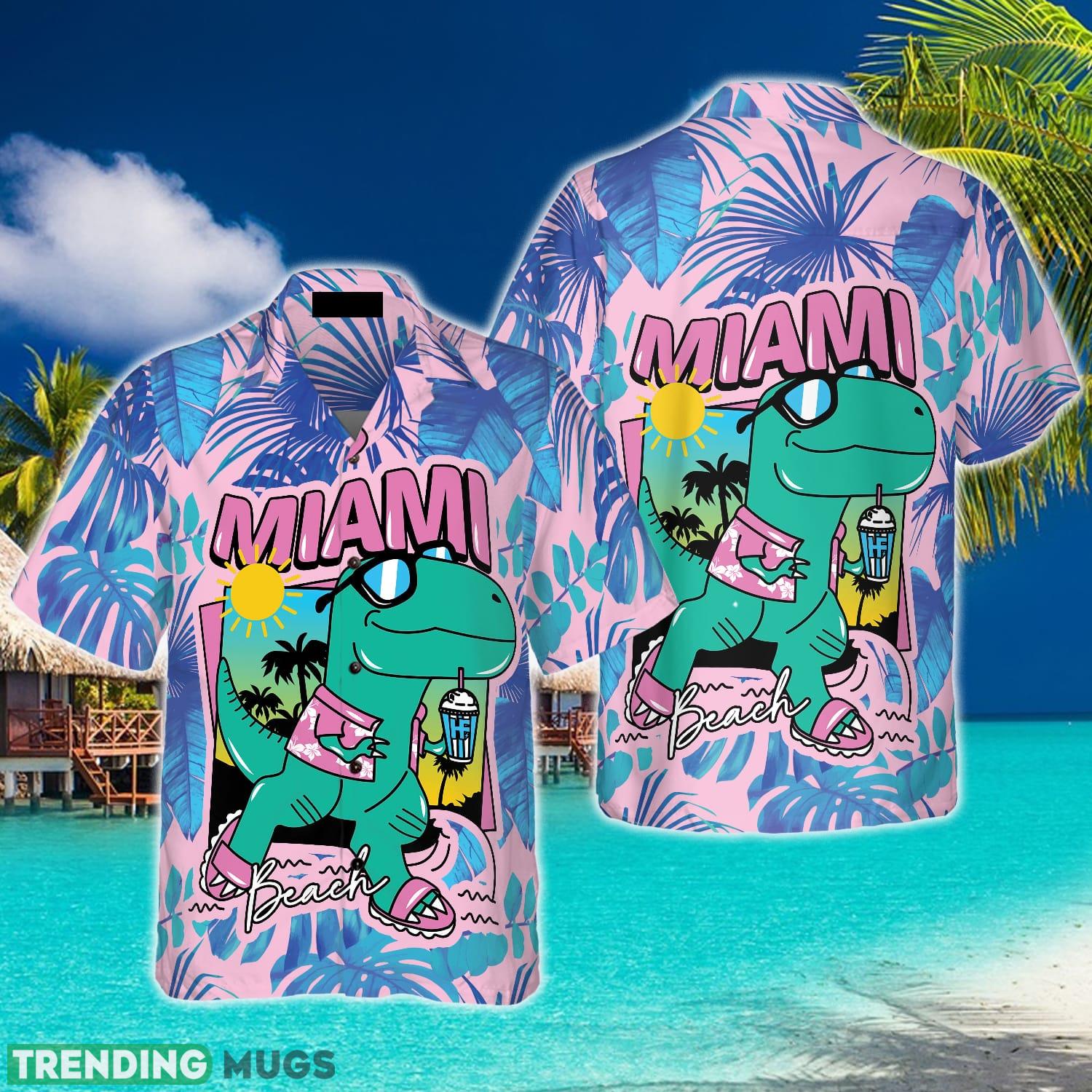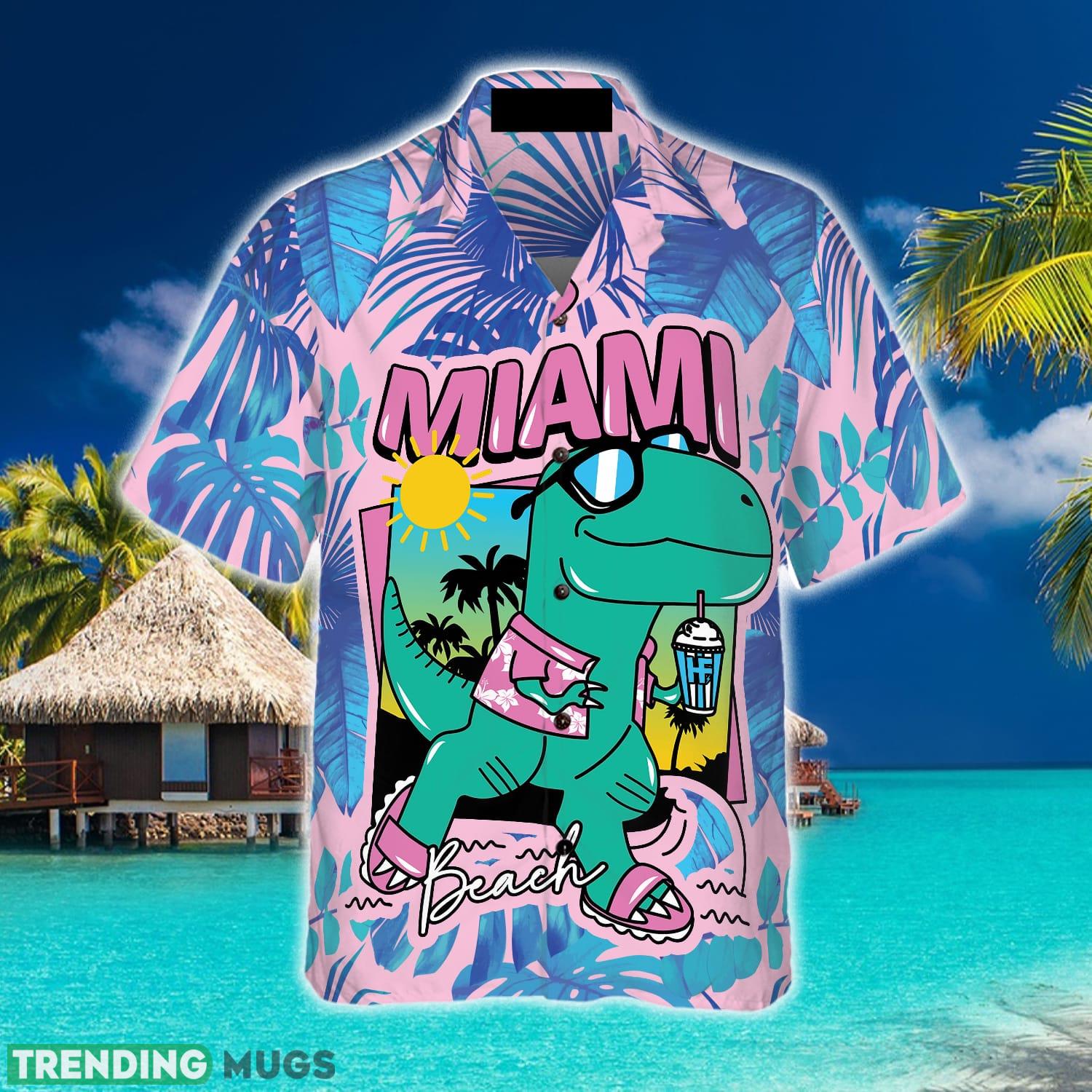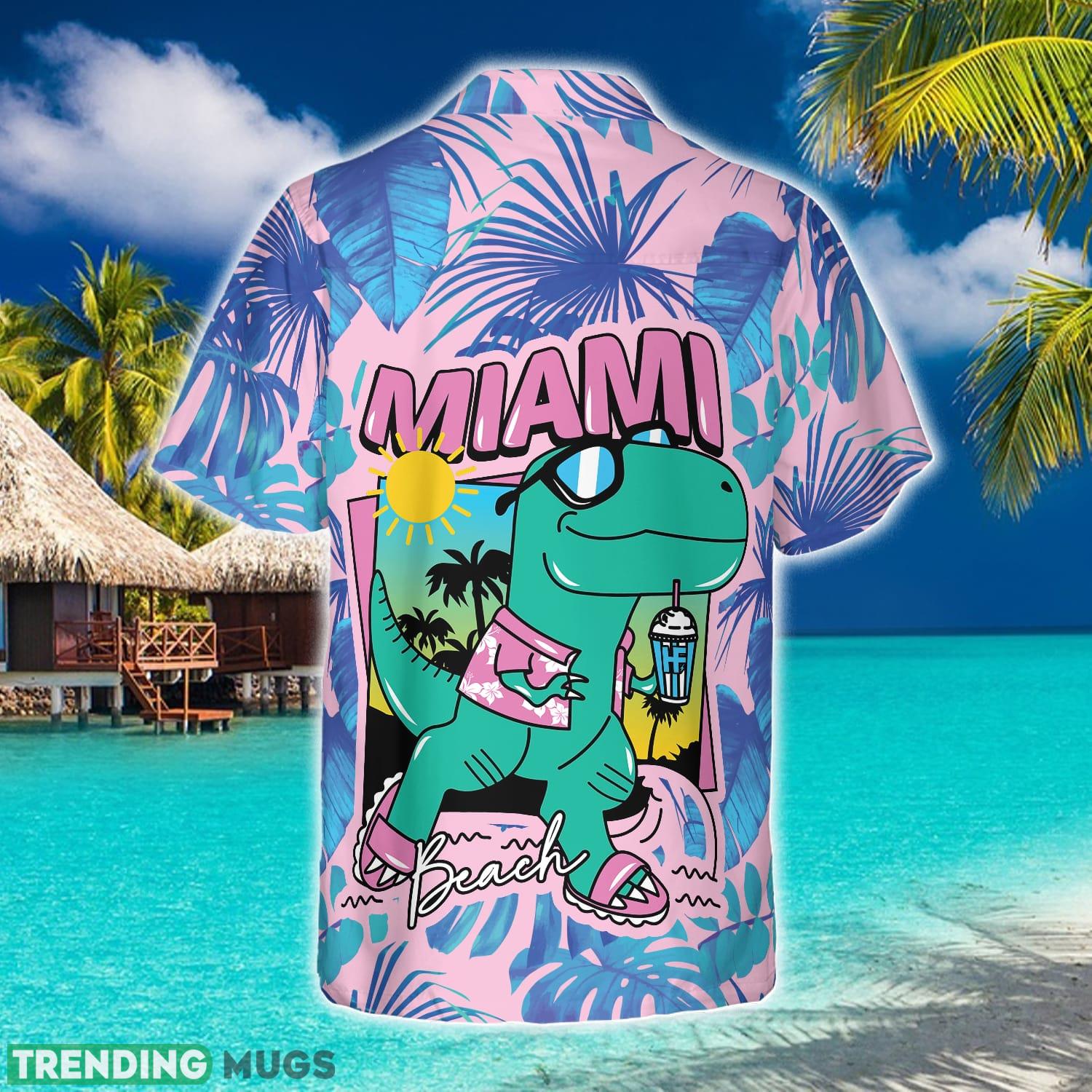 Miami South Beach Cool T- Rex Dinosaur 3D Hawaiian Shirt Beach Summer For Men And Women Gift – Miami South Beach Cool T- Rex Dinosaur Hawaiian Shirt_1