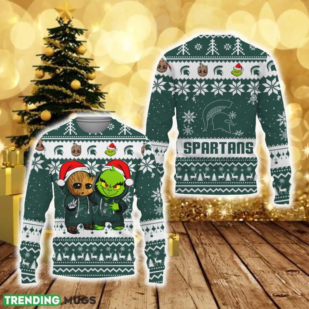 Michigan State Spartans Baby Groot And Grinch Best Friends Football American New 3D Sweater Gift Ugly Christmas – Michigan State Spartans Baby Groot And Grinch Best Friends Football American New 3D Sweater Gift Ugly Christmas