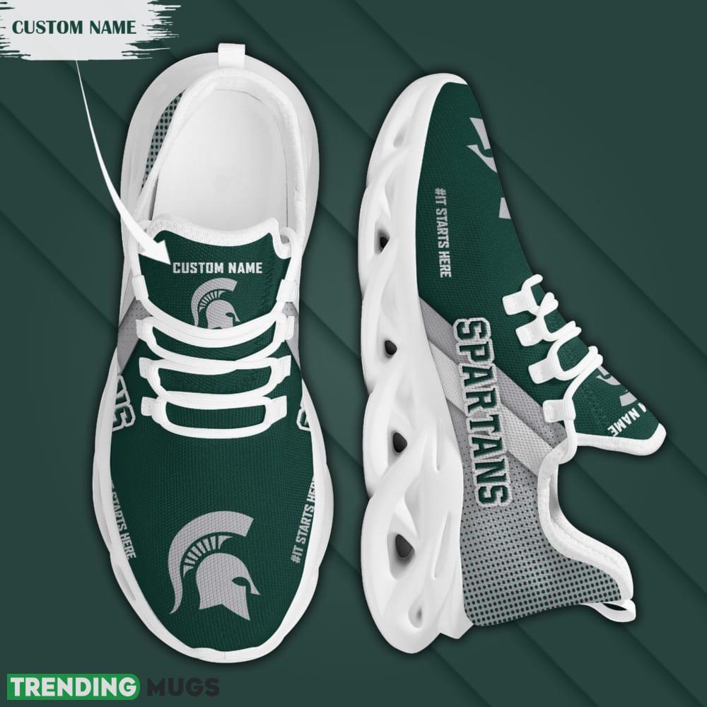 Michigan State Spartans Logo Custom Name Pattern 3D Max Soul Sneaker Shoes In Green And Gray information:
