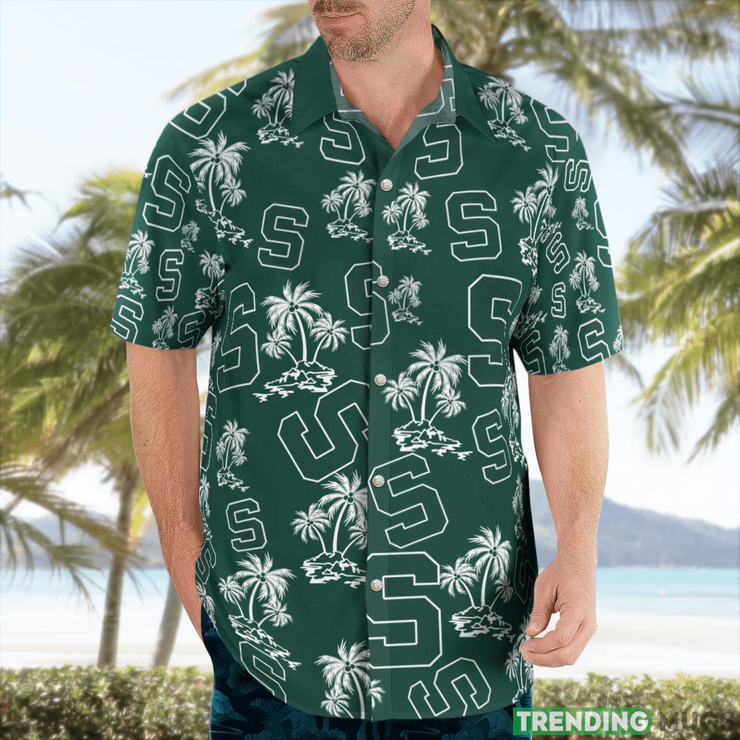 Get ready to show off your Michigan State Spartans pride in style with our Logo Printed Tropical Hawaiian Shirt! Designed for both men and women, this vibrant shirt is the perfect addition to your summer wardrobe. Whether you’re heading to a beach getaway or simply want to bring a touch of paradise to your everyday life, this shirt is a must-have.